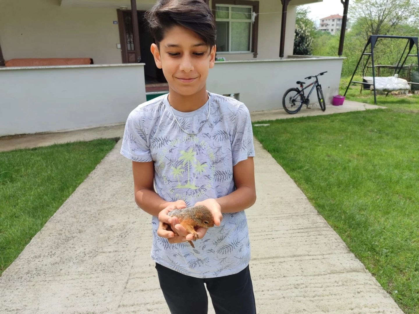 Serhat YILMAZ/AKYAZI(Sakarya), (DHA)-SAKARYA'nın Akyazı ilçesinde Hasan Seyfi Çelik, mezarlıkta bulduğu yavru sincabı biberonla besliyor. Akyazı ilçesine bağlı Kuzuluk Ortamahalle'de ikamet eden 13 yaşındaki Hasan Seyfi Çelik, ailesi ile birlikte gittiği mezarlıkta bir ağacın altında yeni doğmuş sincap buldu. Ailesinin izniyle sincabı alıp besleyen Çelik, hayvana 'Pırıl' ismini verdi. Sincabı evinde biberon ve inek sütüyle besleyen Çelik, büyüdükten sonra tekrar doğaya salacağını söyledi. (DHA)