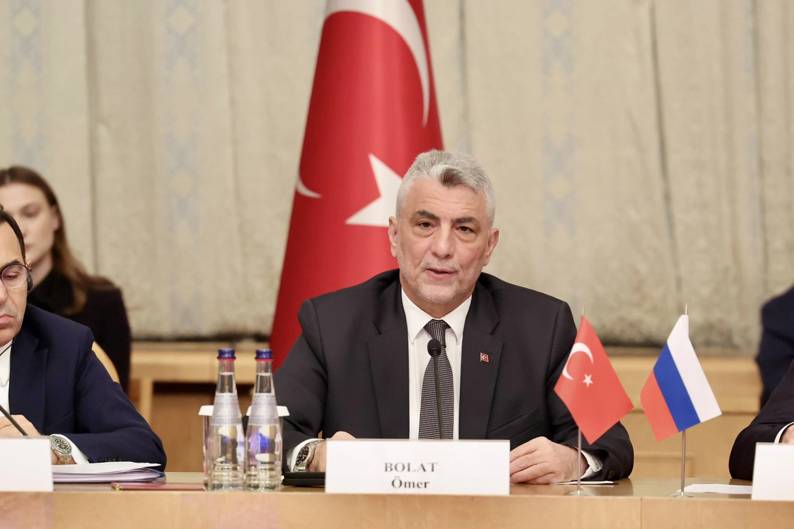 RUSYA, (DHA) - TİCARET Bakanı Ömer Bolat, Moskova'da düzenlenen Türk-Rus Ticari ve Ekonomik İşbirliğine Dair Hükümetlerarası Karma Komisyonu (KEK) 19’uncu Dönem Toplantısı’na katıldı.Ticaret Bakanı Ömer Bolat, sosyal medya hesabından yaptığı paylaşımda, “Rusya Federasyonu Başbakan Yardımcısı Sayın Aleksandr Novak ile birlikte Eş Başkanlığını icra ettiğimiz Türk-Rus Ticari ve Ekonomik İşbirliğine Dair Hükümetlerarası Karma Komisyonu (KEK) 19’uncu Dönem Toplantısını bugün Moskova’da gerçekleştirdik. KEK Toplantısı kapsamında, küresel ekonomiye dair değerlendirmeler, ikili ticari ve ekonomik ilişkilerimiz, enerji, tarım, müteahhitlik, çevre, eğitim ve ulaştırma gibi iki ülke arasındaki ilişkilere dair pek çok hususu üst düzeyde kapsamlı bir şekilde değerlendirdik. Toplantı sonunda da Türkiye-Rusya ticari ve ekonomik ilişkilerinde bir yol haritası olacak tüm bu hususları içeren KEK Protokolü’nü imzaladık” ifadelerini kullandı.GÖRÜNTÜ DÖKÜMÜ------------------------------------------------------------ Bakan Bolat ile Rusya Başbakan Yardımcısı Novak'ın KEK Protokolü’nü imzaladığı görüntüler