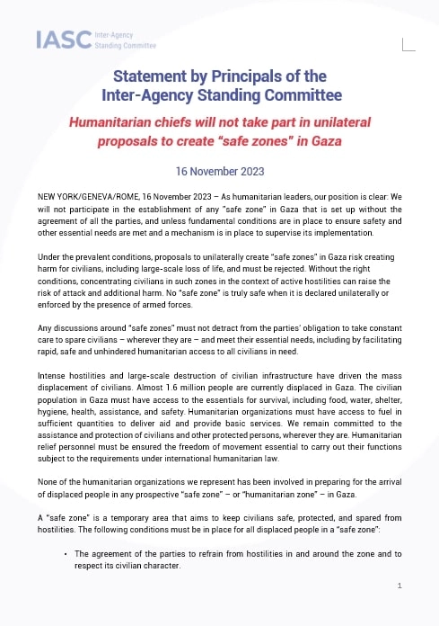 Beril SÖNMEZ, (DHA) – Birleşmiş Milletler’in (BM) 18 yardım kuruluşunun şefleri, İsrail’in Filistinli sivilleri güneye gönderip Gazze'de ‘güvenli bölgeler’ oluşturulmasına yönelik çalışmalarda yer almayacaklarını duyurdu. BM şefleri, ordunun oluşturduğu güvenli bölgenin gerçekten güvenli olmayacağını vurguladı. BM Genel Kurul kararıyla 1991 yılında kurulan ve 18 BM yardım kuruluşunun şeflerinin bağlı olduğu Kuruluşlar Arası Daimi Komite (IASC), dün yayınladıkları bildiride “İnsani yardım liderleri olarak tutumumuz açıktır: Gazze'de tüm tarafların mutabakatı olmadan, güvenliğin ve diğer temel ihtiyaçların karşılanmasını sağlayacak ana koşullar sağlanmadan ve bunların uygulanmasını denetleyecek bir mekanizma mevcut olmadığı sürece herhangi bir 'güvenli bölgenin' kurulmasına katılmayacağız” açıklamasını yaptı. BÜYÜK ÇAPTA CAN KAYBI YAŞANABİLİR İsrail’in oluşturmaya çalıştığı bu ‘güvenli bölgelerin’, savaştan kaçan sivilleri dar bir alana yetersiz koşullarda hapsetmenin ciddi sonuçlarını olacağını vurgulayan BM şefleri, böyle bir durumda büyük çapta can kaybı olma riskine karşı uyardı. Bildiride “Doğru koşullar olmadan, aktif düşmanlıklar bağlamında sivillerin bu tür bölgelerde yoğunlaştırılması, saldırı ve ek felaket riskini artırabilir. Tek taraflı olarak ilan edilen veya silahlı kuvvetlerin varlığıyla uygulanan hiçbir ‘güvenli bölge’ gerçekten güvenli değildir” ifadeleri yer aldı. Temsil ettikleri hiçbir kurumun bu tür güvenli bölgelerin hazırlıklarına katılmadığının altını çizen kurum şefleri, bildirinin sonunda ateşkes çağrılarını yineledi. Bildiriyi imzalayan 18 kurumun şefleri arasında DSÖ Genel Direktörü Dr. Tedros Adhanom Ghebreyesus, OHCHR Yüksek Komiseri Volker Türk, OCHA İnsani İşlerden Sorumlu Genel Sekreter Yardımcısı ve Acil Yardım Koordinatörü Martin Griffiths, UNHCR Yüksek Komiseri Filippo Grandi gibi isimler yer aldı. FOTOĞRAFLI