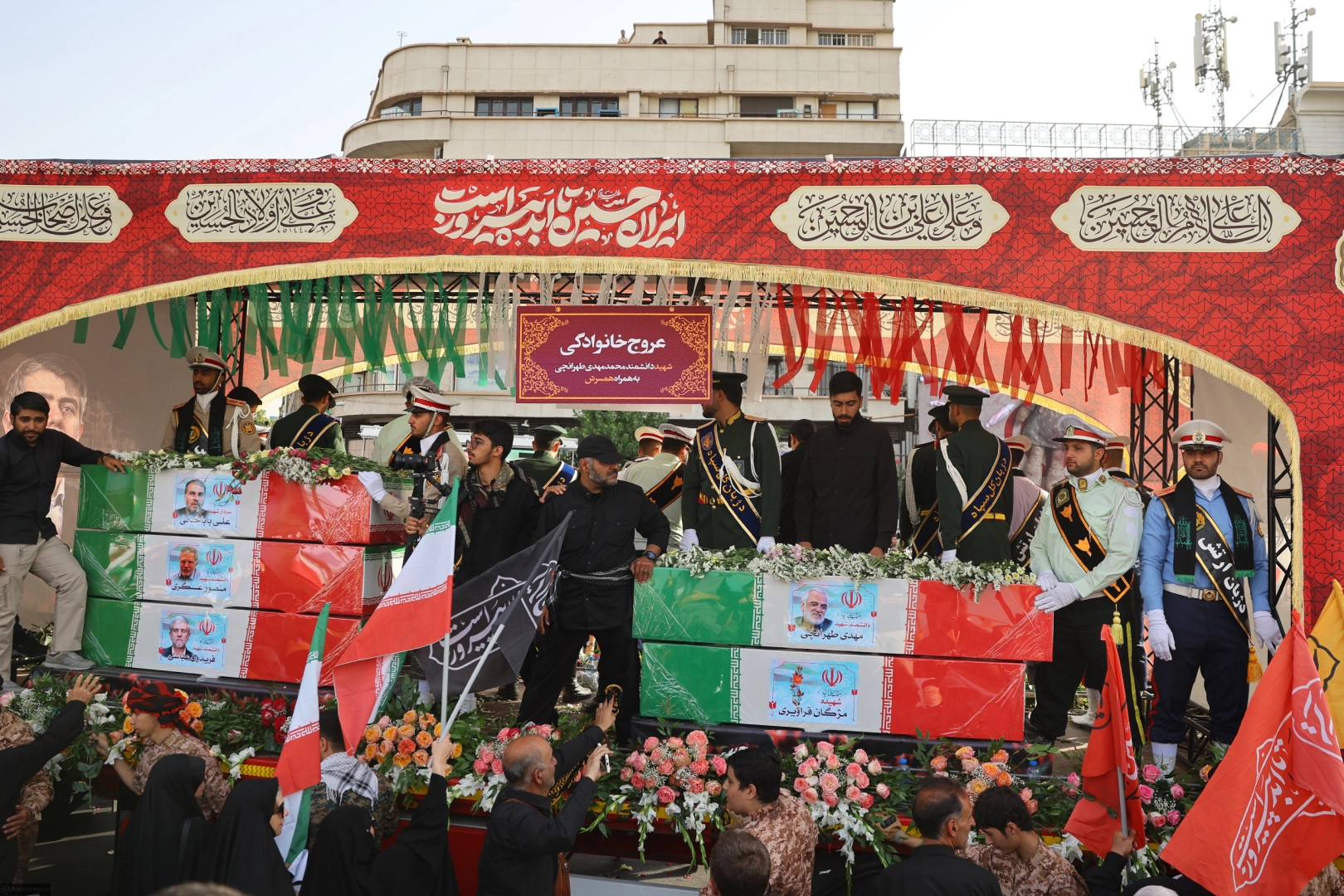 İRAN, (DHA) - İSRAİL’in hava saldırılarında hayatını kaybeden üst düzey askeri komutanlar, nükleer bilim insanları ve bazı siviller için Tahran’da cenaze töreni düzenlendi.İran’ın başkenti Tahran’da, İsrail’in saldırılarında hayatını kaybeden Genelkurmay Başkanı Tümgeneral Bakıri’nin de aralarında bulunduğu üst düzey askeri komutanlar, nükleer bilim insanları ve bazı sivillerden oluşan 60 kişi için toplu cenaze törenleri düzenlendi. Tahran Üniversitesi yerleşkesinde sabah saatlerinde kılınan cenaze namazlarıyla başlayan törenlere, Cumhurbaşkanı Mesud Pezeşkiyan’ın yanı sıra çok sayıda üst düzey yetkili katıldı.Tören alanında bir araya gelen on binlerce kişi, ellerinde İran bayrakları ve matemi temsil eden siyah bayraklarla dualar ve mersiyeler okudu.