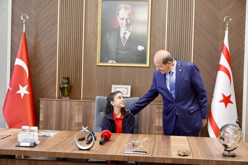 KKTC, (DHA) - KKTC Cumhurbaşkanı Ersin Tatar, 23 Nisan Ulusal Egemenlik ve Çocuk Bayramı kutlamaları kapsamında, 9 Eylül İlkokulu Müdürü Elçin Altan’ın öncülük ettiği öğrenci heyetini kabul etti.KKTC Cumhurbaşkanı Ersin Tatar, Cumhurbaşkanlığı yerleşkesinde gerçekleşen kabulde, görevini temsili olarak 9 Eylül İlkokulu öğrencisi Melin Kunt’a devretti. Cumhurbaşkanı Tatar, çocuklara hitaben yaptığı konuşmada, yeni Cumhurbaşkanlığı binasındaki ilk kabulünde öğrenci heyetini ağırlamaktan büyük mutluluk duyduğunu belirtti. Tatar, “Bugün burada bir tarih yazılıyor. Bu binada ağırladığım ilk ziyaretçiler sizlersiniz” diyerek, öğrencilerle çektirilen fotoğrafın da bu anlamda tarihi bir belge olacağını söyledi ve bu özel anın, çocuklar için gelecekte değerli bir hatıra olacağını ifade etti.Konuşmasında 23 Nisan’ın anlam ve önemine değinen Cumhurbaşkanı Tatar, büyük önder Mustafa Kemal Atatürk’ün bu bayramı sadece Türk çocuklarına değil, tüm dünya çocuklarına armağan ettiğini hatırlatarak, “Çocuklar bizim geleceğimizdir” dedi. Öğrencilere seslenen Cumhurbaşkanı Tatar, eğitimin yanı sıra kültür, sanat, spor ve sosyal alanlarda da gelişmelerinin önemine dikkat çekti. Tatar ayrıca iyi bir birey olabilmek için sosyal becerilerin, sanatın ve sporun da büyük rolü olduğunu da vurguladı. Fotoğrafçılıktan müziğe, resimden spora birçok alanda yeteneklerini geliştirebileceklerini aktaran Tatar, “Bu ülkeyi bir gün sizler yöneteceksiniz. O yüzden şimdiden kendinizi her yönüyle geliştirin” ifadelerini kullandı. Cumhurbaşkanı Tatar’ın çocuklara hitabının ardından Cumhurbaşkanlığı’ndaki makam odasına geçildi. Burada, 9 Eylül İlkokulu öğrencisi Melin Kunt, Cumhurbaşkanlığı makamını temsili olarak Ersin Tatar’dan devraldı. 9 Eylül İlkokulu öğrencisi Melin Kunt, temsili Cumhurbaşkanı sıfatıyla yaptığı konuşmada, kendisini ‘ülkenin ilk kadın cumhurbaşkanı’ olarak tanıttı ve “Hayallerim büyük, umutlarım güçlü, yüreğim cesur” ifadeleriyle sözlerine başladı. Kunt, bir ülkeyi büyütenin yalnızca yollar ve köprüler değil, sevgiyle, adaletle ve oyunlarla büyüyen çocuklar olduğunu kaydetti.Çocukların mutluluğunu esas alan bir ülke hayal ettiğini belirten Kunt, “Her şehirde daha çok park olacak, her okulda hayaller konuşulacak, okulların imkanları arttırılacak ve laik, çağdaş bir okul ortamı oluşturulacak” dedi. Kitapların yalnızca bilgi vermekle kalmayıp kalpleri de ısıtması gerektiğini söyleyen Kunt, “Çocukların duygularını önemsiyorum. Çünkü bazen çocuklar, büyüklerin unuttuğu sevgi, dürüstlük ve umut gibi değerleri hatırlatır” ifadelerini kullandı.‘ÇOCUKLAR GÜLERSE DÜNYA GÜZELLEŞİR’Kunt konuşmasını, “Haydi, el ele verelim. Bu güzel ülkemizi Ata'mızın yolunda ilerleyen, özgür düşünen, barışçıl çocuklarla güçlendirmeye devam edelim. Çünkü çocuklar gülerse dünya güzelleşir.” sözleriyle tamamladı.Ziyaretin sonunda Cumhurbaşkanı Ersin Tatar, 23 Nisan nedeniyle çocuklara hediyeler takdim etti. Ardından Cumhurbaşkanlığı önünde anı fotoğrafları çekildi.GÖRÜNTÜ DÖKÜMÜ---------------------------- Cumhurbaşkanı Tatar'ın makamında öğrencileri ağırlaması- Genel detaylar