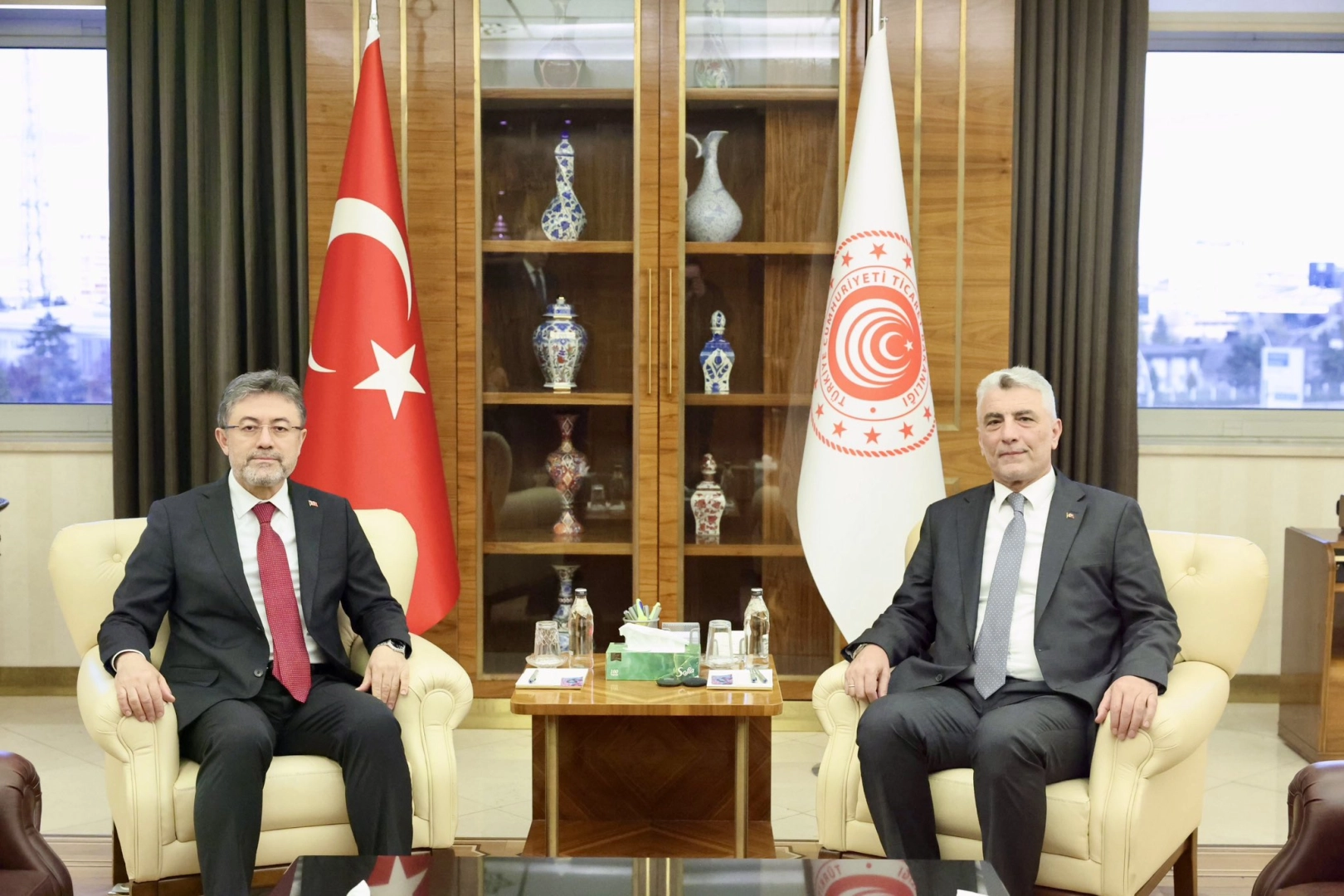 ANKARA, (DHA)- TİCARET Bakanı Ömer Bolat ile Tarım ve Orman Bakanı İbrahim Yumaklı, tarım politikaları ve ihracata ilişkin değerlendirme toplantısı yaptı. Ticaret Bakanı Ömer Bolat, sosyal medya hesabından yaptığı açıklamada, "Bugün Ticaret Bakanlığımızda, Tarım ve Orman Bakanımız Sayın İbrahim Yumaklı ile bir araya geldik. Toplantımızda, ülkemizin tarım alanında attığı adımları, tarımsal alandaki stratejimizi, üreticilerimize, çiftçilerimize yönelik destekleri, tarım alanındaki ihracat politikalarını ve son günlerdeki hava koşullarının etkilerini ele aldık. Ticaret Bakanlığı olarak, başta Tarım ve Orman Bakanlığı olmak üzere ilgili kurum ve kuruluşlarımızla koordinasyon içerisinde tarımsal üretimin en önemli aktörleri olan üreticilerimizi ve çiftçilerimizi desteklemeye, ülkemizin tarımsal ihracattaki konumunu güçlendirecek adımları kararlılıkla hayata geçirmeye devam edeceğiz. Tarım ve Orman Bakanımız Sayın Yumaklı'ya nazik ziyaretleri ve Bakanlıklarımızın ilgi alanına giren konulardaki iş birliğimizi güçlendirme noktasındaki katkıları için teşekkür ediyorum" ifadelerini kullandı. (DHA)