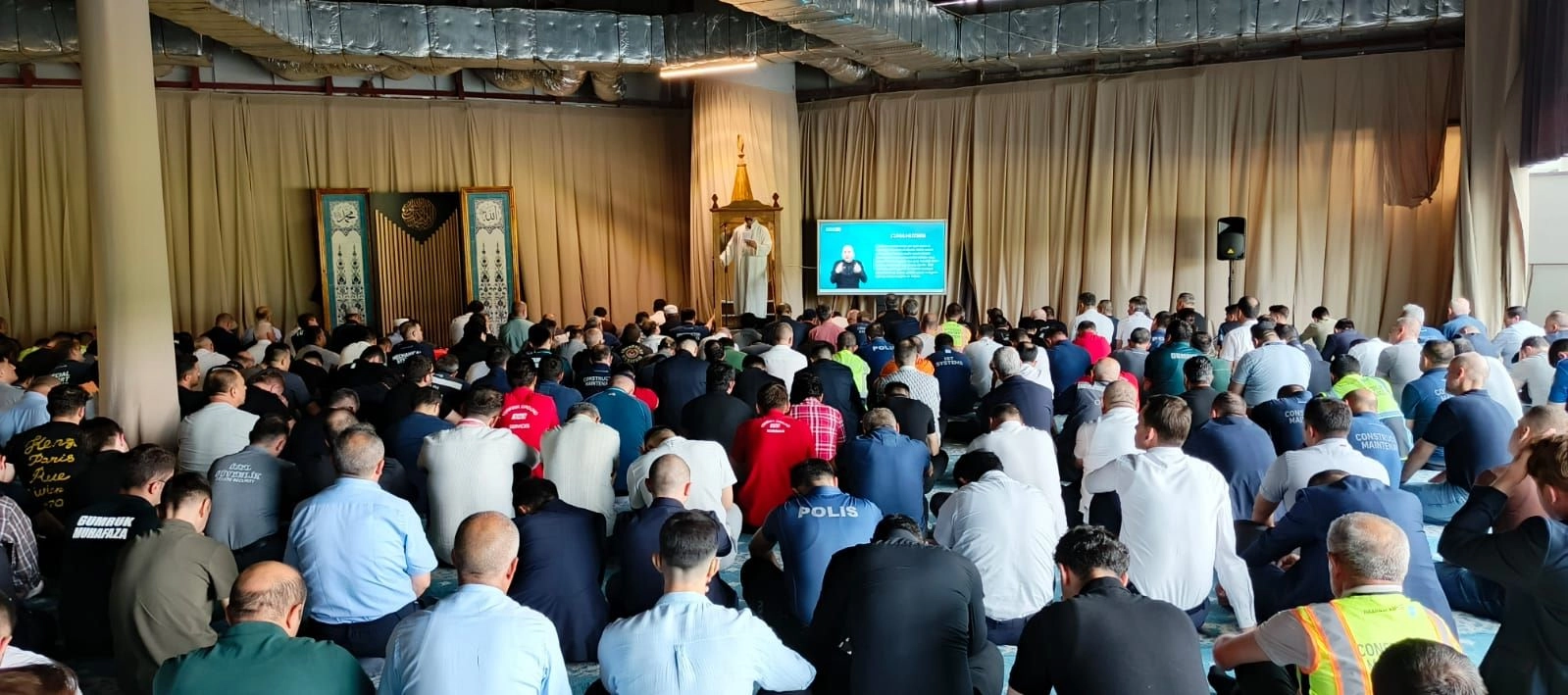 İbrahim YILDIZ/İSTANBUL,(DHA)- İSTANBUL Havalimanı İşletmecisi İGA, işitme engelli yolcu ve personelin cuma hutbesini anlayabilmesi mescitte kurdukları dijital ekranlardan hutbesi işaret diliyle anlatıldı.İstanbul Havalimanı’nda, işitme engelli bireylerin cuma hutbesini anlayabilmeleri için mescitlere dijital ekran kuruldu. Kurulan bu ekranlardan hutbe işaret diliyle anlatıldı. Havalimanında görev yapan farklı firmalara mensup işitme engelli çalışanlar ve yolcular uygulamayı memnuniyetle karşıladılar. Erişilebilir ibadete katkı sunmayı amaçlayan bu uygulama, işaret dili desteğiyle engelli bireylerin toplumsal hayata daha aktif katılımına da imkan sağlıyor.