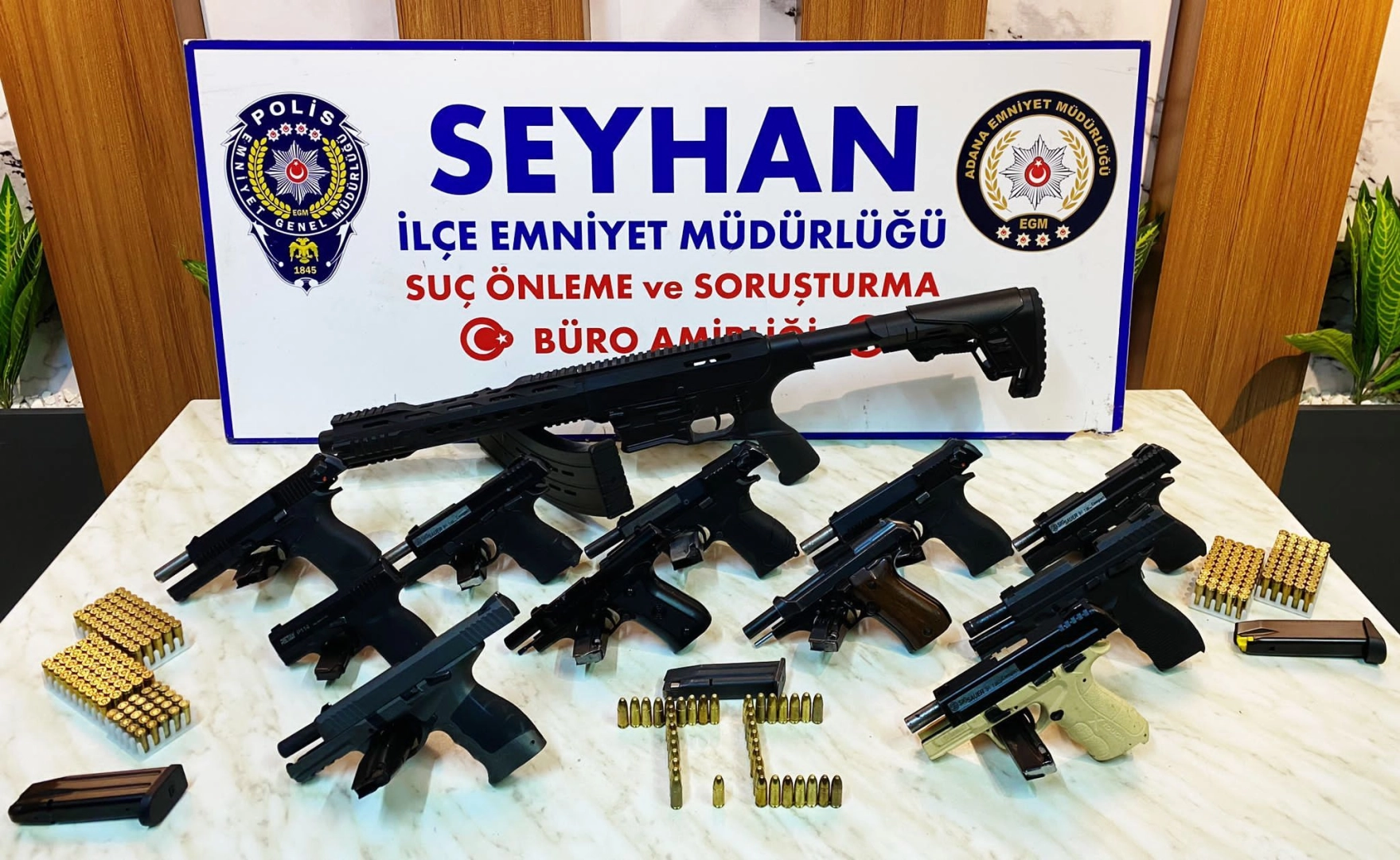 Anıl ATAR/ ADANA, (DHA)- ADANA'da, polis ekiplerinin operasyon düzenlediği akaryakıt istasyonunda ruhsatsız 10 tabanca, 1 av tüfeği, 1 kurusıkı tabanca, 387 mermi ile 66 uyuşturucu hap ve 7,86 gram esrar ele geçirildi. Şüpheliler S.Ş. ile K.Ö. gözaltına alındı. Seyhan İlçe Emniyet Müdürlüğü Suç Önleme ve Soruşturma Büro Amirliği ekipleri, Dağlıoğlu Mahallesi'ndeki akaryakıt istasyonunda çok sayıda ruhsatsız silah saklandığı bilgisiyle harekete geçti. Ekipler, akaryakıt istasyonuna düzenlenen operasyonda şüpheliler S.Ş. ile K.Ö.'yü gözaltına aldı. İş yerinin deposunda yapılan aramalarda ruhsatsız 10 tabanca, 1 av tüfeği, 1 kurusıkı tabanca, bu silahlara ait 387 mermi ile 66 uyuşturucu hap ve 7,86 gram esrar ele geçirildi. Polis merkezine götürülen şüphelilerin sorgusunun sürdüğü bildirildi. (DHA) FOTOĞRAFLI