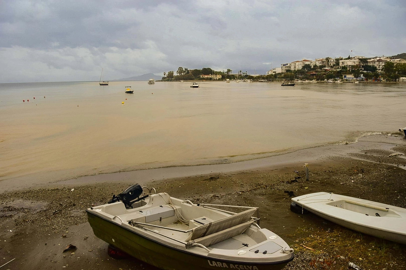 Evren ERSOY/DATÇA (Muğla), (DHA)- MUĞLA'nın Datça ilçesinde, sağanak sırasında derelerin taşıdığı çamurlu su nedeniyle denizin rengi değişti. Datça'da öğle saatlerinde başlayan ve zaman zaman etkili olan sağanak, hayatı olumsuz etkiledi. 15 dakika süren sağanak nedeniyle görüş mesafesi düştü. Elektrik kesintisinin de yaşandığı ilçede yağan yağmur sonrası Kumluk Plajı'nda denizin rengi, derelerin taşıdığı çamurlu yağmur suları nedeniyle kahverengiye döndü. (DHA) FOTOĞRAFLI