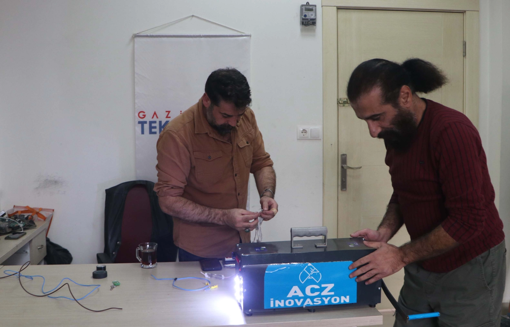 Kadir GÜNEŞ/GAZİANTEP, (DHA)- GAZİANTEP Üniversitesi Teknopark'ta 5 yıldır inovasyon çalışmaları yürüten İsmail Ertuğrul Uyasır başkanlığındaki ekip, depremde elektrik kesintisi sorunundan esinlenip ürettikleri ve manuel şarj olan 4 adet yerli jeneratörü hastanelerde kullanılması için Gazze'ye gönderdi. İsmail Ertuğrul Uyasır, aralarında mühendislerin de bulunduğu bir grup arkadaşıyla 2018'de şirket kurup Gaziantep Üniversitesi Teknopark'ta enerji, havacılık, hava araçları teknolojisi üzerine çalışmalar başlattı. Uyasır başkanlığındaki ekip, Kahramanmaraş merkezli depremlerin ardından, o süreçte meydana gelen elektrik kesintileri ve enerji sorunu üzerine çalışmaya başladı. Uzun ömürlü bataryalar kullanıp taşınabilir jeneratör üreten ekip, yaptıkları projeyi Sanayi ve Teknoloji Bakanlığı'na sunup onay aldı. Elle çalışan ve üzerindeki kolun 10 dakika boyunca çevrilmesiyle 52 saatlik aydınlatma sağlayan jeneratör, İsrail'in saldırılarının ardından özellikle hastanelerde elektrik sorununa çözüm olması için Gazze'ye gönderildi. '52 SAAT AYDINLATMA SAĞLIYOR' İsmail Ertuğrul Uyasır, bu cihaz ile 10 dakikalık bir çevirme ile cep telefonları şarjı için 6 saatlik bir kullanım elde edildiğini söyledi. Eğer telefon şarj edilmez ise 2 ampulün 52 saat boyunca aydınlatma yapılabildiğini kaydeden Uyasır, ''Deprem ve sonrasındaki süreçte meydana gelen enerji sıkıntısından sonra düşünerek bu cihazı geliştirmiştik. Daha önceden türevleri de olan kolla çevrilmeli ve manyetikli manuel jeneratörler. Yalnız var olan cihazlarda bazı sıkıntılar vardı. Güce bindiği anda çevirmesi zorlaşıyordu. Miliamper yapısı düşüktü. Bunları göz önüne alarak 1 milyon miliamperlik bir cihaz yaptık. 10 dakikalık bir çevirme ile cep telefonlar şarjı için 6 saatlik bir kullanım elde ediliyor. Eğer telefon şarj edilmez ise 2 tane ampul ile 52 saat boyunca aydınlatma yapılabiliyor. Test ve ölçümlerimizde bunları görmüş olduk. Aynı anda 2 cep telefonu şarj edilebiliyor. LED ışıklardan sayısına ve ihtiyaca göre 100 taneye kadar yakılabiliyor. Tabi bu ışıkların sayısı yükseldikçe kullanım süresi aşağıya düşüyor. Cihaz 10 voltun aşağısına düşünce tekrar el ile çevirerek 12,9'a çıkarıyorsunuz kendi elektriğini kendisi üreterek bataryada depoluyor ve kullanılabiliyor'' dedi. 'ÇARŞAMBA GÜNÜ GAZZE'DE OLACAK' İsrail'in Gazze'ye yönelik saldırılarının ardından önemli oranda enerji sıkıntısı yaşandığını dile getiren İsmail Ertuğrul Uyasır, geliştirdikleri bu cihazın hastanelerde kullanışlı olacağını düşündüklerini ifade etti. Gazze'de doktorların telefon ışıkları ile ameliyat yapmak zorunda kalmayacaklarına değinen Uyasır, ''Şu an Gazze'de bir soykırım gerçekleştiriliyor. Oradaki insanlar büyük bir zulüm altındalar. Ameliyatlar dahi telefon ışıkları ile yapılıyor. Bizde buradan üzüntü ile takip ediyoruz. Bunun için ne yapabiliriz diye düşündük. Bizim daha önceden tasarladığımız manuel enerji cihazın orada özellikle hastanelerde çok işe yarayabileceğini düşündük. Kendi imkanlarımız ile geliştirdiğimiz 4 adet cihazı İstanbul Valiliği aracılığıyla Gazze'ye gönderme kararı aldık. Cihazlarımızı İstanbul'a yolladık, bu cihazlarımız çarşamba günü Gazze'dde olacak" diye konuştu. 'HASTANELER İÇİN ÇOK FAYDALI OLACAK' İsmail Ertuğrul Uyasır, hastanelerdeki medikal cihazların şarj edilmesinde de bu cihazın kullanılabileceğini kaydederek, şöyle konuştu: ''İçerisinde DS motor ve özel bataryalar var. Motora modifiye yaptık. Küçük bir çocuk bile çevirip enerji elde edebilir. Biz bu kolla çevrilerek üretilen enerjiyi bataryalarda depolayıp çıkışlarda kullanıma sunuyoruz. Bu cihaz enerjinin gerektiği her yerde kullanılabilir. Aynı anda 100 adet LED ampul yakıyor. Bu çok ciddi bir aydınlatma demek. Dolayısıyla cep telefonu ışığı ile yapılan ameliyatlara artık gerek kalmayacak. Telefon, medikal cihazlar, solunum cihazlarının elektriğe bağlanmasında çok işe yarayacağını düşündük. Yani elektrik lazım olan her yerde kendi enerjilerini üreterek kullanabilecekler.'' FOTOĞRAFLI