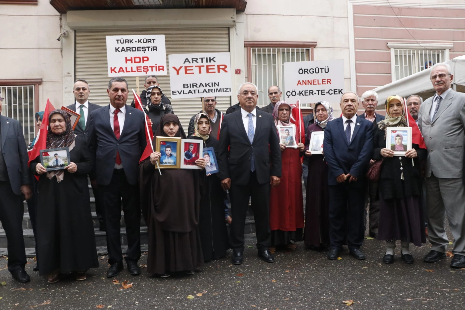 Gıyasettin TETİK- Selim KAYA/DİYARBAKIR, (DHA)- DEMOKRATİK Sol Partisi (DSP) Genel Başkanı Önder Aksakal ve beraberindeki heyet, Diyarbakır’da HDP önünde evlat nöbetindeki aileleri ziyaret etti. DSP Genel Başkanı Önder Aksakal ve beraberindeki heyet, Diyarbakır’a gelerek, terör örgütü PKK tarafından kaçırılan çocukları için 3 Eylül 2019’dan bu yana HDP binası önünde oturma eylemi yapan ailelere ziyarette bulundu. Aksakal ve beraberindekiler, ailelerle tek tek görüşerek bir süre sohbet etti. Ziyaretinin ardından açıklamalarda bulunan Aksakal, çocukların kaçırılıp devlete silah sıkan insanlar haline getirildiğini belirterek, “Evlatları kaçırılan ailelerimizin 1500 gündür burada çektiği bir çile var. Bu 1500 değil, 40 yıldır süren bir sıkıntıdır. ABD öncülüğünde başlatılan bu emperyalist işgal planlarına bir siyasi mekanizmanın eliyle, bugünkü adı HEDEP olan bu sözde siyasi partileriyle evlatlarımız terörist yapılmak üzere dağlara götürülmüş ve kendi devletine, ordusuna silah sıkan insanlar haline getirmiş. Ben inanıyorum ki bu evlatlarımın kendi öz benliklerinde böyle bir duygu hiçbir zaman yoktur. Devletimiz güçlü bir devlettir. Emperyalizm başaramayacak, bu bölgeye geldikleri gibi gidecekler. Bu mücadelenin her zaman yanında olacağız” dedi. (DHA) FOTOĞRAFLI