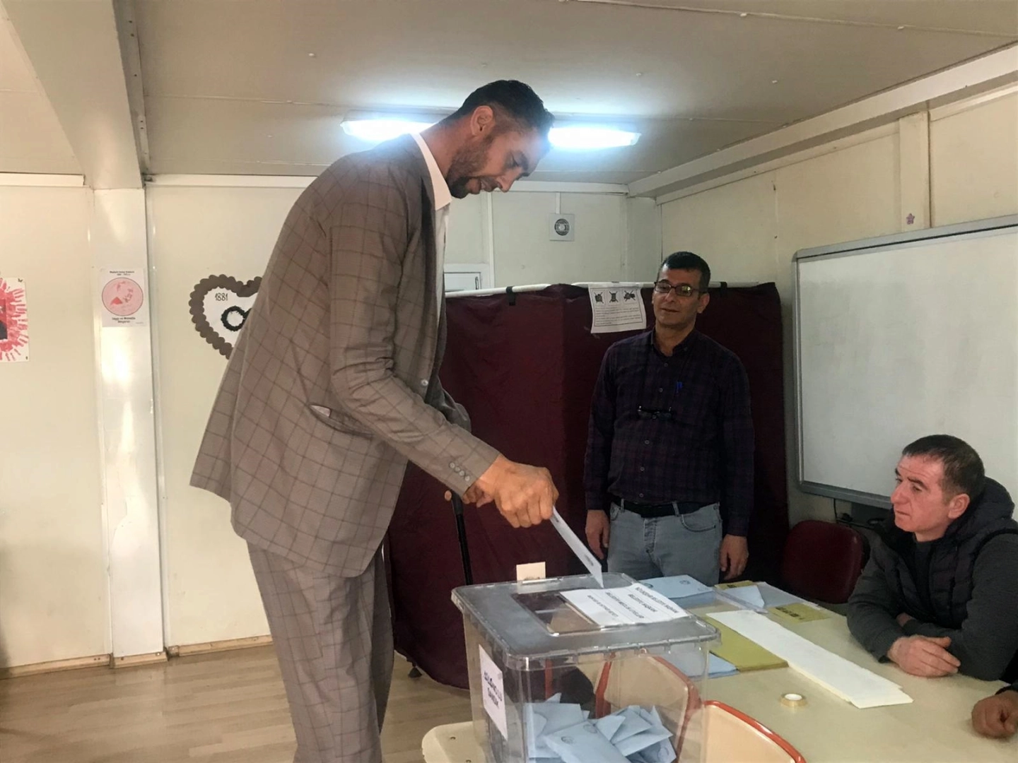 Emrullah KARAKAŞ/DERİK (Mardin), (DHA)- DÜNYANIN en uzun adamı olarak Guinness Rekorlar Kitabı'na giren 2 metre 51 santimetre boyundaki Mardinli Sultan Kösen, Derik ilçesine bağlı Kırsal Alibey Mahallesi’nde oyunu kullandı.2 metre 51 santimetre boyuyla dünyanın en uzun adamı olan Sultan Kösen, Mahalli İdareler Genel Seçimi’nde oyunu Derik’in kırsal Alibey Mahallesi’nin Kurudere mezrasındaki ilkokulda kullandı. Mahallenin Dede mezrasında yaşayan ve yürüme güçlüğü çeken Kösen, oy vermeye babası Abdulkadir ve kardeşi Şeyhmus ile geldi. 390 seçmenin bulunduğu 1010 numaralı sandığa oyunu atan Kösen, “Ülkemize ve milletimize hayırlı olsun” dedi. Kösen, oyunu kullandıktan sonra diğre seçmenlerle hatıra fotoğrafı çektirdi.Alibey Mahallesi Muhtarı Ali Acabek, “Sultan Kösen bizim köyde yaşıyor. İkinci seçimde de her ne kadar şartlarımız iyi olmasa da gelip oyunu kullandı. Vatanımıza ve milletimize hayırlı uğurlu olsun” diye konuştu.(DHA)