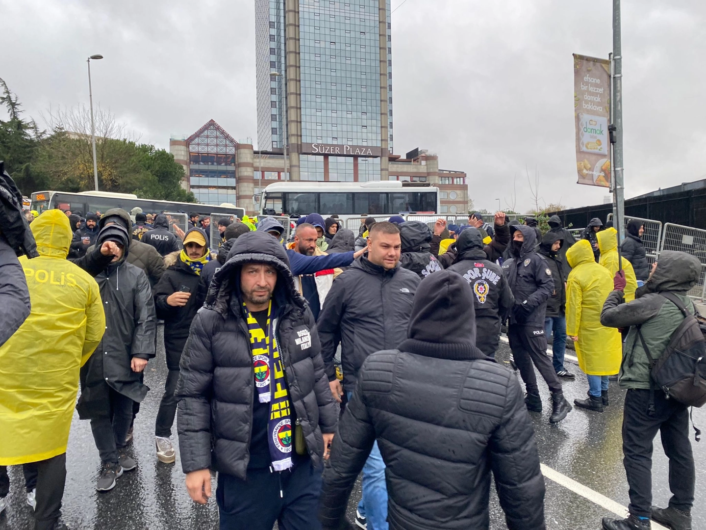Ali DANAŞ / İSTANBUL, (DHA) - Süper Lig'in 15'inci haftasında bu akşam saat 19.00'da Beşiktaş'a konuk olacak Fenerbahçe'de taraftarlar, stada giriş yaptı. İl Spor Güvenlik Kurulu'nun aldığı karar doğrultusunda takımına tribünden destek verecek olan bin 814 Fenerbahçe taraftarı, karşılaşma öncesi Ülker Stadyumu'nda toplandı. Güvenlik önlemleri eşliğinde biletleri kontrol edilen taraftarlar, 24'ü dolu olmak üzere toplam 25 otobüs ile Tüpraş Stadyumu'na hareket etti. Saat 16.30 gibi derbinin oynanacağı stada ulaşan taraftarlar, güvenlik önlemleri altında otobüslerden indirilerek stada giriş yaptı. GÖRÜNTÜ DÖKÜMÜ: - Otobüslerin stada gelmesi - Taraftarların otobüsten inmeleri - Taraftarların güvenlik önlemleri eşliğinde stada girmeleri (FOTOĞRAFLI)