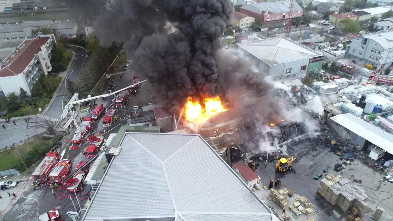 (havadan fotoğraflarla) Esenyurt'ta kimyasal maddelerin bulunduğu depoda yangın