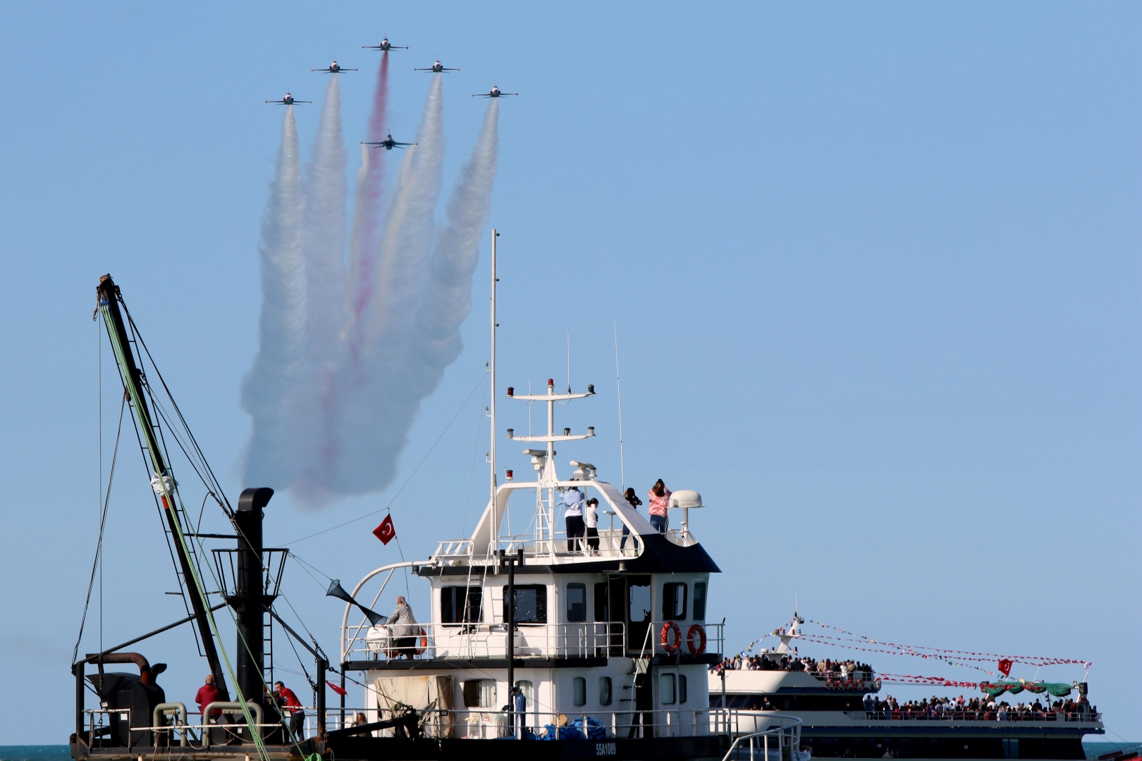 Emre ÖNCEL/ SAMSUN, (DHA)- SAMSUN'da, 19 Mayıs Atatürk'ü Anma, Gençlik ve Spor Bayramı etkinlikleri kapsamında; Türk Yıldızları, SoloTürk ve HÜRJET'in gösterisi nefes kesti. İlk kez gösteri yapan HÜRJET’i on binlerce kişi büyük bir ilgiyle izledi.Türk Hava Kuvvetleri’nin akrobasi timi Türk Yıldızları, SoloTürk ve HÜRJET, 19 Mayıs Atatürk'ü Anma, Gençlik ve Spor Bayramı etkinlikleri kapsamında Samsun'da muhteşem bir gösteriye imza attı. İlk kez bir gösteride yer alan HÜRJET, yaklaşık 15 dakika vatandaşların nefesini kesti.Gösteri, kentin farklı bölgelerinden on binlerce kişi tarafından takip edildi. Gösteriyi Samsun Valisi Orhan Tavlı, AK Parti Genel Başkan Yardımcısı ve Samsun Milletvekili Çiğdem Karaaslan, Samsun Garnizon Komutanı Gazi Tümgeneral Davut Ala, Büyükşehir Belediye Başkanı Halit Doğan, İl Jandarma Komutanı Tuğgeneral Mustafa Bakçepınar, İl Emniyet Müdürü Ahmet Arıbaş ile vatandaşlar izledi. (DHA)