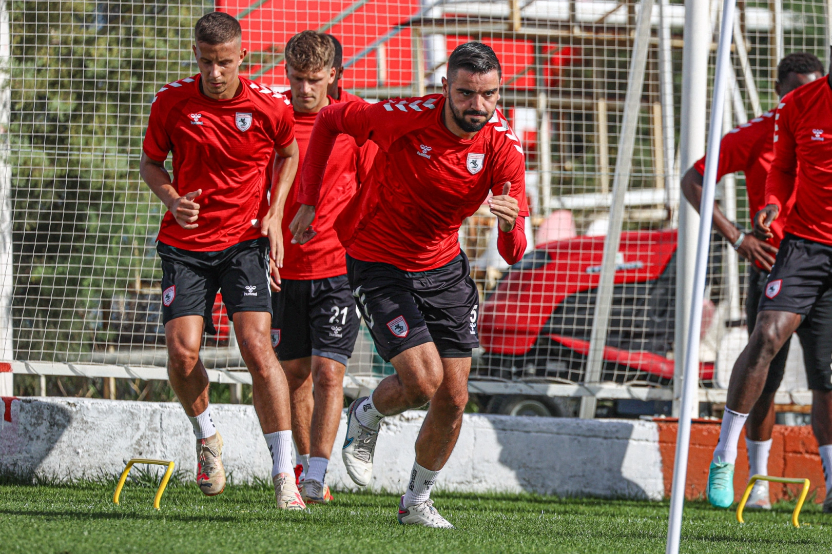 Gökhan İÇKİLLİ/SAMSUN, (DHA)- SÜPER Lig’in 10’uncu haftasında MKE Ankaragücü ile deplasmanda karşılaşacak olan Samsunspor, bu sabah yaptığı antrenmanla hazırlıklarını tamamlayarak karayolu ile Ankara’ya hareket etti. Nuri Asan Tesisleri’nde teknik direktör Markus Gisdol yönetiminde gerçekleştirilen antrenman ısınma hareketleri ve pas çalışmasının ardından son buldu. Ankaragücü ile Samsunspor yarın saat 19.00’da Eryaman Stadyumu’nda karşılaşacak. Mücadelede Cihan Aydın düdük çalacak. Aydın’ın yardımcılıklarını Hakan Yemişken ve Özgür Ertem üstlenecek. Ankara’ya sakatlıkları bulunan Mickael Tırpan ve Taylan Antalyalı götürülmezken, kadroda şu isimler yer aldı; "Okan Kocuk, Jakub Szumski, Halil Yeral, Yunus Emre Çift, Lubomir Satka, Rick Van Drongelen, Alim Öztürk, Zeki Yavru, Kingsley Schindler, Soner Gönül, Youssef Ait Bennasser, Soney Aydoğdu, Osman Çelik, Flaviev Tait, Muhammed Gümüşkaya, Carlo Holse, Olivier Ntcham, Emre Kılınç, Moryke Fofana, Marius Mouandilmadji, Ercan Kara ve Landry Dimata." (DHA) FOTOĞRAFLI
