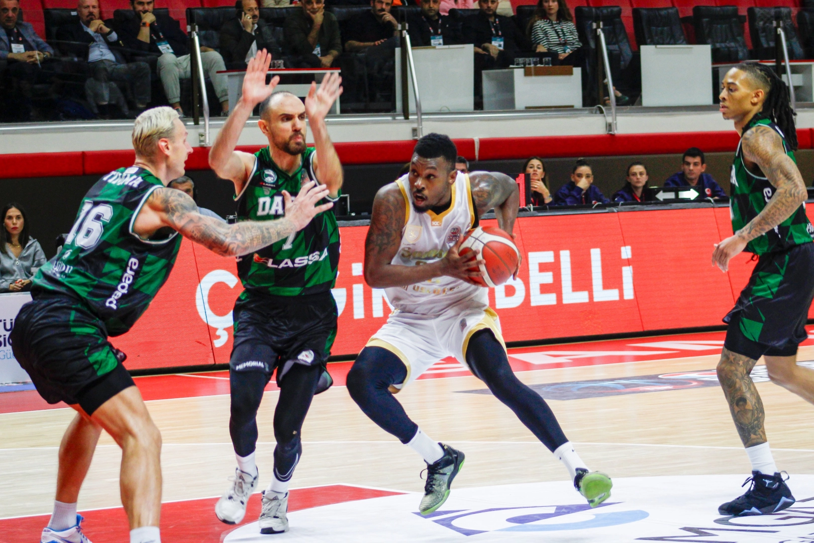 İbrahim CANBULAT/SAMSUN,(DHA) - Samsunspor, Türkiye Sigorta Basketbol Süper Ligi’nde üst üste oynadığı 6 maçtan da mağlubiyetle ayrılarak son sırada yer aldı. Türkiye Sigorta Basketbol Süper Ligi, Samsunspor’a yaramadı. Geçen sezon Türkiye Basketbol Ligi’nde şampiyon olan ve uzun yıllardan sonra Basketbol Süper Ligi’ne yükselen kırmızı-beyazlılar için mutlu günler mazide kaldı. Ligde sıkıntılı günler yaşayan Samsun ekibi, sezon başından bu yana oynadığı 8 maçın 7’sini kaybetti. Kırmızı-beyazlı ekip, Üst üste oynadığı Manisa Büyükşehir Belediyesi, Aliağa Petkim, Fenerbahçe Ülker, Anadolu Efes, Türk Telekom ve Darüşşafaka maçlarından mağlubiyetle ayrıldı. Samsunspor sadece kendisi gibi düşme hattında yer alan Merkezefendi Belediyesi Basket karşısında galip gelebildi. Üst üste alınan mağlubiyetler sonrası camiada moralleri bozulurken kırmızı-beyazlı taraftarlar da art arda gelen mağlubiyetler sonrası büyük üzüntü yaşadı. (DHA)