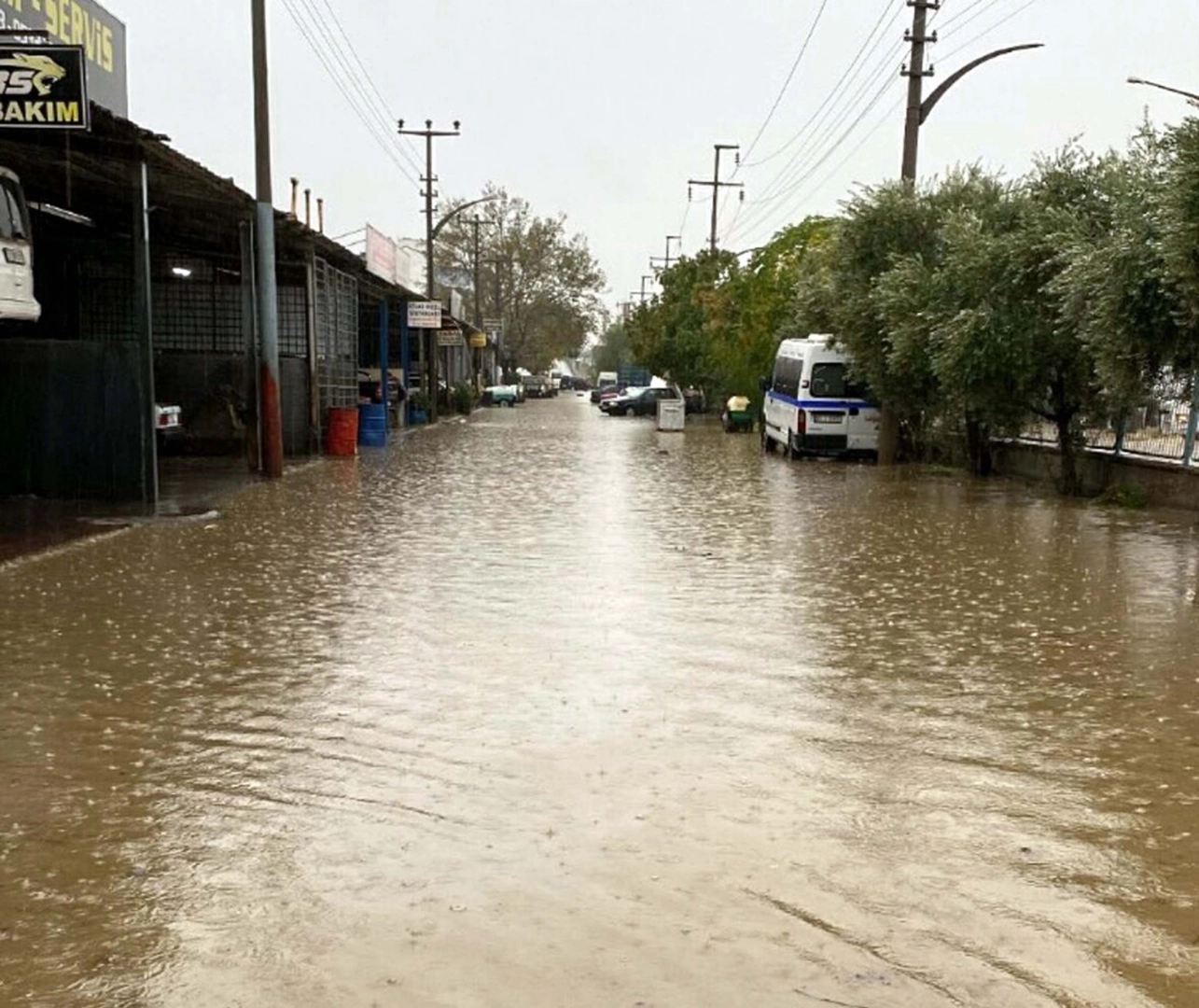 Doğan ÇİZMECİ/TURGUTLU (Manisa), (DHA)- MANİSA'nın Turgutlu ilçesinde etkili olan sağanak nedeniyle cadde ve sokaklar göle döndü, yaya ve sürücüler zor anlar yaşadı. Turgutlu'da sabah saatlerinde başlayan ve zaman zaman etkili olan kuvvetli yağış nedeniyle İstasyonaltı Mahallesi Tren Garı Kavşağı, Fatih Sanayi Sitesi, İzmir-Ankara kara yolunun yan yolları, eski Manisa yolu ile Ergenekon Mahallesi'nin belli bölümlerinde biriken yağmur suyu, araç ve yaya trafiğini olumsuz etkiledi. Yağmur suyunun taşıdığı çöpler, rögarları tıkayıp, taşkınlara nedene oldu. Manisa Büyükşehir Belediyesi Su ve Kanalizasyon İdaresi (MASKİ) ve itfaiye ekipleri su baskınlarına karşı önlem alıp, tıkanan rögarlara müdahale etti. İş yerlerini su basan bazı esnaf, kendi çabalarıyla suyu tahliye etmeye çalıştı. SANAYİ SİTESİNDE O SOKAK YİNE SU ALTINDA KALDI Kuvvetli sağanak nedeniyle Turgutlu Küçük Sanayi Sitesi'nde de su baskını yaşandı. Manisa Büyükşehir Belediyesi ve MASKİ ekiplerinin daha önce altyapı çalışması yaptığı Turgutlu Küçük Sanayi Sitesi'ndeki 100. Sokak'ta ve İzmir - Ankara yolu üzerinde yağış sonrası yine benzer görüntüler ortaya çıktı. Sokak esnafı, çalışma yapılmasına rağmen her yağmurda aynı görüntülerle karşılaşmaktan bıktıklarını söyleyerek yetkililere tepki gösterdi. Esnaf, su baskının yaşandığı sokaktaki suyu, kendi çabasıyla tahliye etti. Esnaf Ramazan Akgün, "Sokak göle döndü. Dükkanlarımızı su bastı. MASKİ sonra geldi" dedi. (DHA)