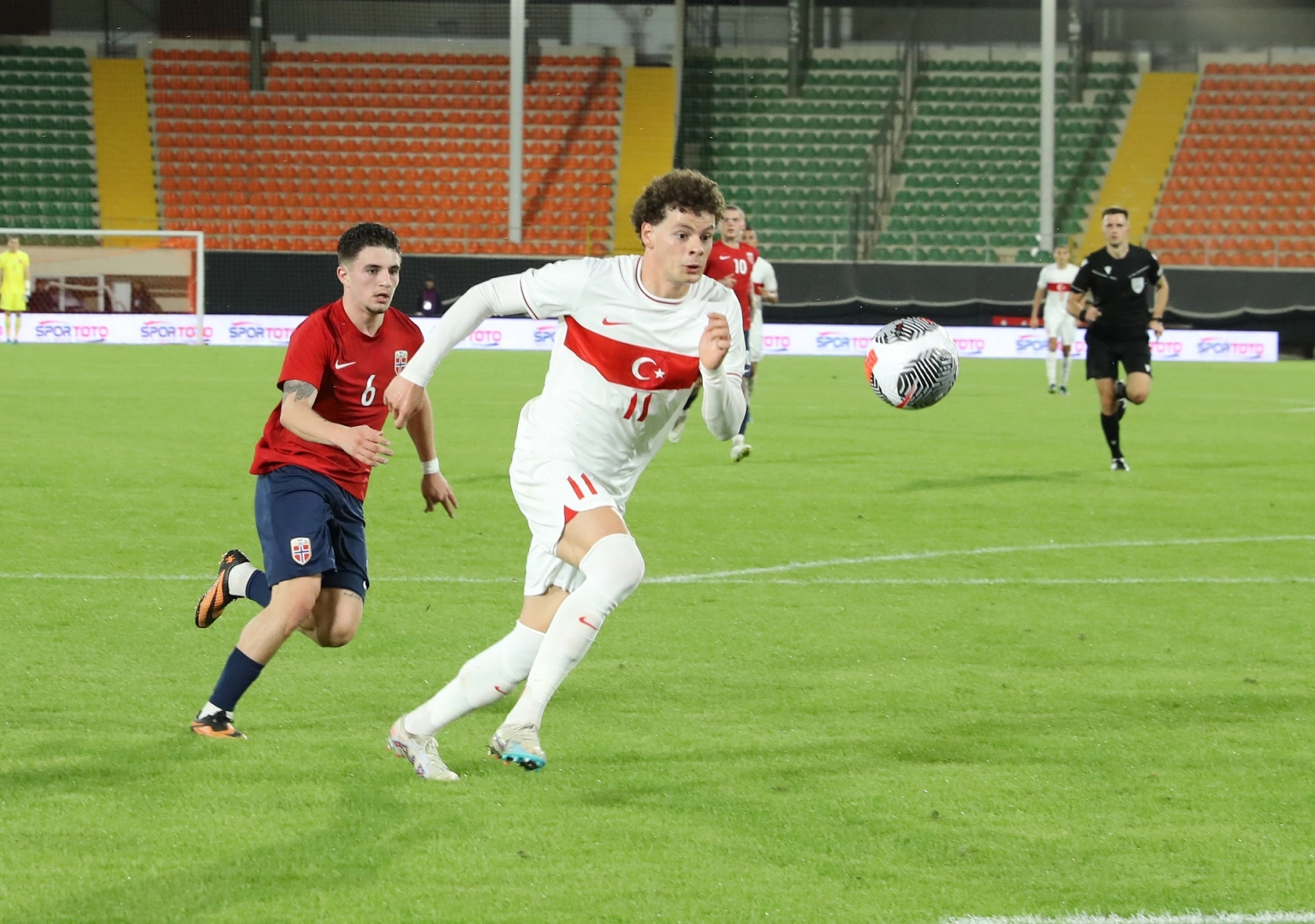 Alkın BİRİCİK / ALANYA (Antalya), (DHA) - STAT: Alanya Oba HAKEMLER: Denys Shurman, Valentyn Kutsev, Oleksandr Korniyko TÜRKİYE U21: Doğan Alemdar, Ayberk Karapo (Dk. 82 Eray Korkmaz), Serdar Saatçı, Emin Bayram, Kazımcan Karataş, Emir Ortakaya, Aksel Baran Potur (Dk. 89 Demir Ege Tıknaz), Yunus Emre Konak, Bartuğ Elmaz, Erencan Yardımcı (Dk. 79 Metehan Altunbaş), Cihan Çanak (Dk. 89 Şahin Dik) NORVEÇ U21: Tangvik, Sjovold (DK. 69 Smidesang Edh), Rodolen, Hjelde (Dk. 41 Hopland), Oppegard, Hansen-Aaröen, Zafeiris, Arnstad, Karlsbakk (Dk. 69 Fiabema), Nordas (Dk. 69 Melkersen), Mvuka (Dk. 84 Gulliksen) GOLLER: Dk. 31 Cihan Çanak, Dk. 64 Erencan Yardımcı (Türkiye U21) SARI KARTLAR: Serdar Saatçı, Doğan Alemdar (Türkiye U21) – Mvuka, Fiabema (Norveç U21) Türkiye 21 Yaş Altı Futbol Takımı, 2025 UEFA 21 Yaş Altı Avrupa Şampiyonası Elemeleri A Grubu 5’inci maçında Norveç’i 2-0 mağlup etti. Alanya Oba Stadı’nda oynanan karşılaşmada millilere galibiyeti getiren golleri 31'inci dakikada Cihan Çanak ve 64'üncü dakikada Erencan Yardımcı kaydetti. 24’üncü dakikada serbest vuruşu kullanan Cihan Çanak’ın ortasında topla buluşan Emir Ortakaya’nın kafa vuruşunda top kaleci Tangvik’te kaldı. 31'inci dakikada Türkiye U21 öne geçti. Cihan Çanak’ın ceza sahası içerisine gönderdiği ortada kafa topuna çıkan Erencan Yardımcı’nın ıskaladığı meşin yuvarlak kaleci Tangvik’in yanılmasıyla filelerle buluştu: 1-0. 38’inci dakikada Cihan Çanak’ın pasıyla sağdan savunma arkasına sarkan Erencan Yardımcı kalecinin yanından vuruşunu yaptı. Kaleciyi geçen topu Norveç U21 savunması çizgiden çıkardı. Karşılaşmanın ilk yarısı Türkiye U21 takımının 1-0 üstünlüğüyle tamamlandı. 55’inci dakikada Norveç U21’in atağında ceza sahası yayı üzerinden sert bir şut gönderen Arnstad’ın vuruşunda kaleci Doğan Alemdar topu kornere çeldi. 58’inci dakikada Norveç U21’in kullandığı kornerde kaleci Doğan Alemdar topu elinden kaçırırken yere düşen meşin yuvarlağa ayak içiyle sert bir vuruş yapan Zafeiris topu kale direğinin üstünden dışarı gönderdi. 64’üncü dakikada Türkiye U21 farkı 2'ye çıkardı. Rakip yarı alanda sağ kanattan yaptığı baskıyla topu kapan Cihan Çanak’ın ceza sahası içerisine girerek son çizgide yaptığı ortasında kaleci Tangvik’İn elinden kaçırdığı meşin yuvarlağı takip eden Erencan Yardımcı’nın kafa vuruşu fileleri havalandırdı: 2-0. Karşılama Türkiye U21 takımının 2-0’lık üstünlüğüyle sonuçlandı. (FOTOĞRAFLI)