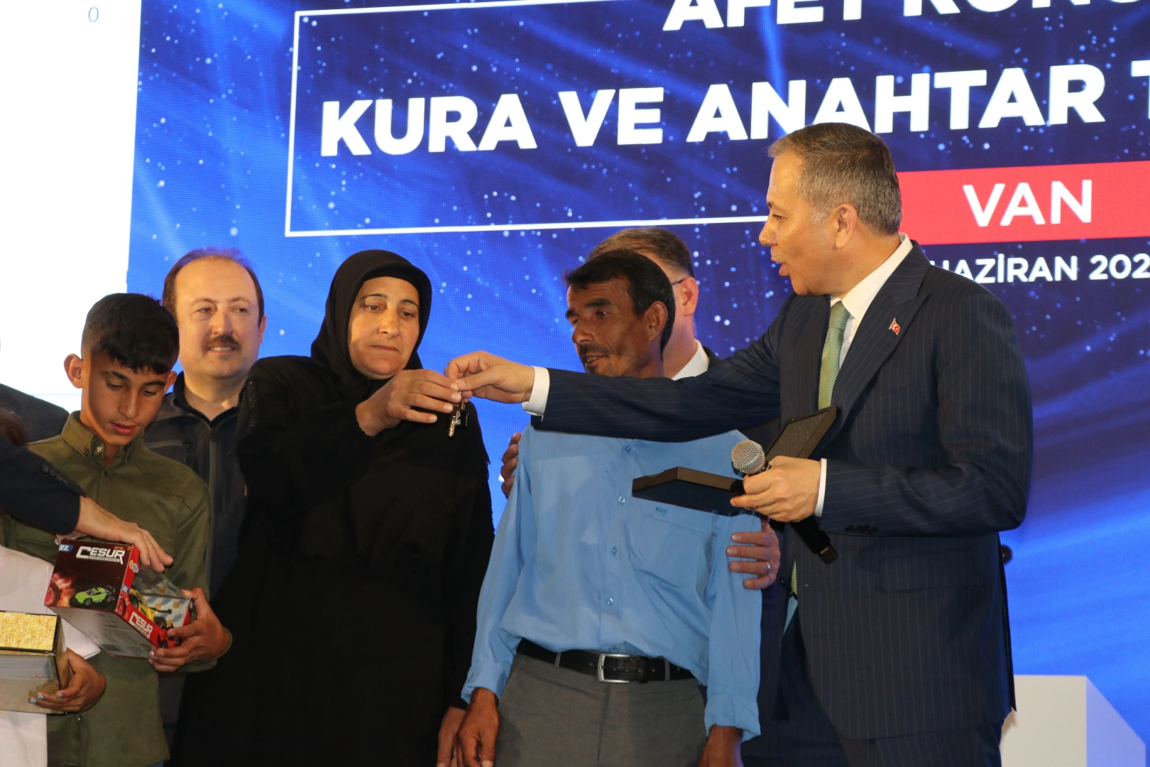 Behçet DALMAZ- Orhan AŞAN/ VAN, (DHA)- İÇİŞLERİ Bakanı Ali Yerlikaya, "Terörsüz bir Türkiye için, huzur dolu şehirler için, çocuklarımızın güvenli yarınları için, durmadan, usanmadan, canla başla çalışacağız. Bu ülkede yaşayan herkesin, canı da malı da inancı da kültürü de Türkiye Cumhuriyeti Devleti'nin güvencesi altındadır. Ay yıldızlı bayrağın gölgesinde, birliğimizden aldığımız güçle, kardeşliğimizden doğan inançla, büyük ve güçlü Türkiye'yi birlikte inşa edeceğiz" dedi.Van'da yapımı tamamlanan 337 afet konutunun kura çekimi ile 32 konutun hak sahiplerine anahtar teslim törenine katılmak üzere kente gelen İçişleri Bakanı Yerlikaya, Van Valisi ve Belediye Başkan Vekili Ozan Balcı tarafından karşılandı. Konutların anahtar teslim töreni, merkez Edremit ilçesinde bulunan uygulama otelinde düzenlendi. Törene Bakan Yerlikaya, Bakan Yardımcısı Münir Karaloğlu, Afet ve Acil Durum Yönetimi (AFAD) Başkanı Ali Hamza Pehlivan, Van Valisi ve Büyükşehir Belediyesi Başkan Vekili Ozan Balcı, Jandarma Asayiş Kolordu Komutanı Tümgeneral Ünsal Bulut, İl Emniyet Müdürü Murat Mutlu, AK Parti Van İl Başkanı Abdulahat Arvas, ilçe kaymakamları ve kura katılan hak sahipleri katıldı. '250 BİN 536 BAĞIMSIZ BÖLÜM VATANDAŞLARIMIZA TESLİM EDİLDİ'Bu toprakların, bin yıllık kardeşliğimizin, birliğimizin, dirliğimizin yaşayan hafızası olduğunu belirten Bakan Yerlikaya, "Bu şehirde, dostluk büyüktür, muhabbet derindir, gönüller açıktır. Nasıl ki, sevincimizi birbirimize sarılarak yaşıyorsak, acılarımızı da omuzlarımıza yaslanarak göğüslüyoruz." dedi. Kahramanmaraş ve Van depremlerine dikkat çekerek birlik ve beraberlik mesajı veren Bakan Yerlikaya şöyle konuştu: "6 Şubat 2023'te meydana gelen hepimizin hafızasında derin izler bırakan o büyük felakette binlerce canımızı yitirdik. Göz yaşlarımız Fırat'a, Dicle'ye, Van Gölü'ne karıştı. Ama hamdolsun millet olarak o gün bir kez daha gösterdik ki, yıkılmadık, eğilmedik, asla yılmadık. Çünkü biz; 2200 yıllık devlet geleneğini, Anadolu'nun bin yıllık kardeşlik destanını kuşanmış bir milletiz. Tıpkı 2011 yılında Van'da yaşadığımız, o büyük depremde olduğu gibi. Yine dimdik durduk, birlik olduk. Devlet ve millet el ele verdik, yürek yüreğe verdik ve Van'ımızı yeniden ayağa kaldırdık. O günlerde, Van'da; 27.702 konut, 3.203 ahır ve 139 iş yeri yapılarak hak sahiplerine teslim edildi. 2020'de Başkale depreminde; 282 konut vatandaşlarımıza teslim edildi. Bugün ise burada, Çatak ve Başkale'de meydana gelen afetler nedeniyle yapımı tamamlanan 337 afet konutunun kurasını çekiyoruz. Ayrıca, Erciş'te konutları daha önce kurası çekilmiş, 32 hak sahibi kardeşimizin anahtarlarını teslim ediyoruz. Ve böylece, Van'da 2011'den bugüne; 28.353 konut ve bağımsız bölümü hak sahibi kardeşlerimize teslim etmiş bulunuyoruz. İşte tüm bunlar; sadece bir konut teslimi değil, aynı zamanda umutların, huzurun, güvenin teslimidir. Kıymetli Kardeşlerim, Geçtiğimiz hafta Kahramanmaraş'ta, Sayın Cumhurbaşkanımız Recep Tayyip Erdoğan ve Azerbaycan Cumhurbaşkanı Sayın İlham Aliyev'in teşrifleriyle büyük bir anahtar teslim törenine şahit olduk. 6 Şubat depremlerinin ardından tam 250 bin 536 bağımsız bölüm vatandaşlarımıza teslim edildi. Bu, sadece Türkiye'nin değil, insanlık tarihinin gördüğü en büyük afet sonrası toparlanma hareketidir. Sayın Cumhurbaşkanımızın liderliğinde; "İnsanı yaşat ki devlet yaşasın" anlayışıyla, Türkiye'nin dört bir yanında yeniden imar, yeniden ihya seferberliği yürütüyoruz. Bugün bir kez daha haykırıyoruz: Aziz milletimizin ebedi yurdu hiçbir zaman sahipsiz kalmayacak. Bu topraklarda kimse yalnız, kimsesiz bırakılmayacak."'GÜÇLÜ TÜRKİYE'Yİ BİRLİKTE İNŞA EDECEĞİZ'Bakan Yerlikaya, kendileri için bu topraklarda Türk- Kürt, Alevi- Sünni'nin olmadığını da belirterek, "Bu toprakların her ferdi bu vatanın öz ve asil sahibidir. Hiç kimse, bu kardeşliğe gölge düşüremez. Hiçbir güç, bu toprakların huzurunu bozamaz. Bahçesaray'dan yükselen söz, Fekiye Teyran'dan dökülen nefes, bu milletin irfanıdır, hikmetidir, birliğinin şiiridir. Ve biz, büyük bir inançla söylüyoruz, Terörsüz bir Türkiye için, Huzur dolu şehirler için, çocuklarımızın güvenli yarınları için, durmadan, usanmadan, canla başla çalışacağız. Bu ülkede yaşayan herkesin; canı da, malı da, inancı da, kültürü de Türkiye Cumhuriyeti Devleti'nin güvencesi altındadır. Ay yıldızlı bayrağın gölgesinde, birliğimizden aldığımız güçle, kardeşliğimizden doğan inançla, büyük ve güçlü Türkiye'yi birlikte inşa edeceğiz" dedi. Teslim edilen konutların hayırlı olmasını dileyen Bakan Yerlikaya, "Bu duygularla, bugün anahtarlarını teslim ettiğimiz evlerin, sizlere sağlık, huzur ve bereket getirmesini temenni ediyorum. Bu büyük imar seferberliğini kararlılıkla yürüten, Türkiye yüzyılının mimarı, Cumhurbaşkanımız Sayın Recep Tayyip Erdoğan'a şükranlarımı sunuyorum. Bu yuvaların yapımında ve tamamlanmasında büyük gayretleri olan, çevre, Şehircilik ve İklim Değişikliği Bakanlığımıza, AFAD'a, TOKİ'ye, Emlak Konut'a, Yapı İşleri Genel Müdürlüğü'ne, alt yapı kuruluşlarımıza. Emek veren, çalışan tüm kardeşlerimize gönülden teşekkür ediyorum. Afetlerde hayatını kaybeden vatandaşlarımıza Allah'tan rahmet diliyorum. Allah birliğimizi, kardeşliğimizi daim eylesin. Allah yuvanıza huzur, sofranıza bereket, gönlünüze neşe versin. Evleriniz mübarek, yuvanız bereketli olsun." diye konuştu. (DHA)