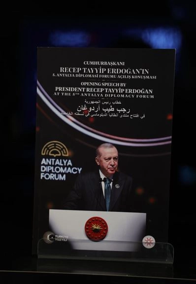 ANKARA, (DHA)- İLETİŞİM Başkanlığı, Cumhurbaşkanı Recep Tayyip Erdoğan'ın Antalya Diplomasi Forumu (ADF) açılış konuşmasını kitaplaştırarak Türkçe, İngilizce ve Arapça olmak üzere 3 dilde yayımladı.