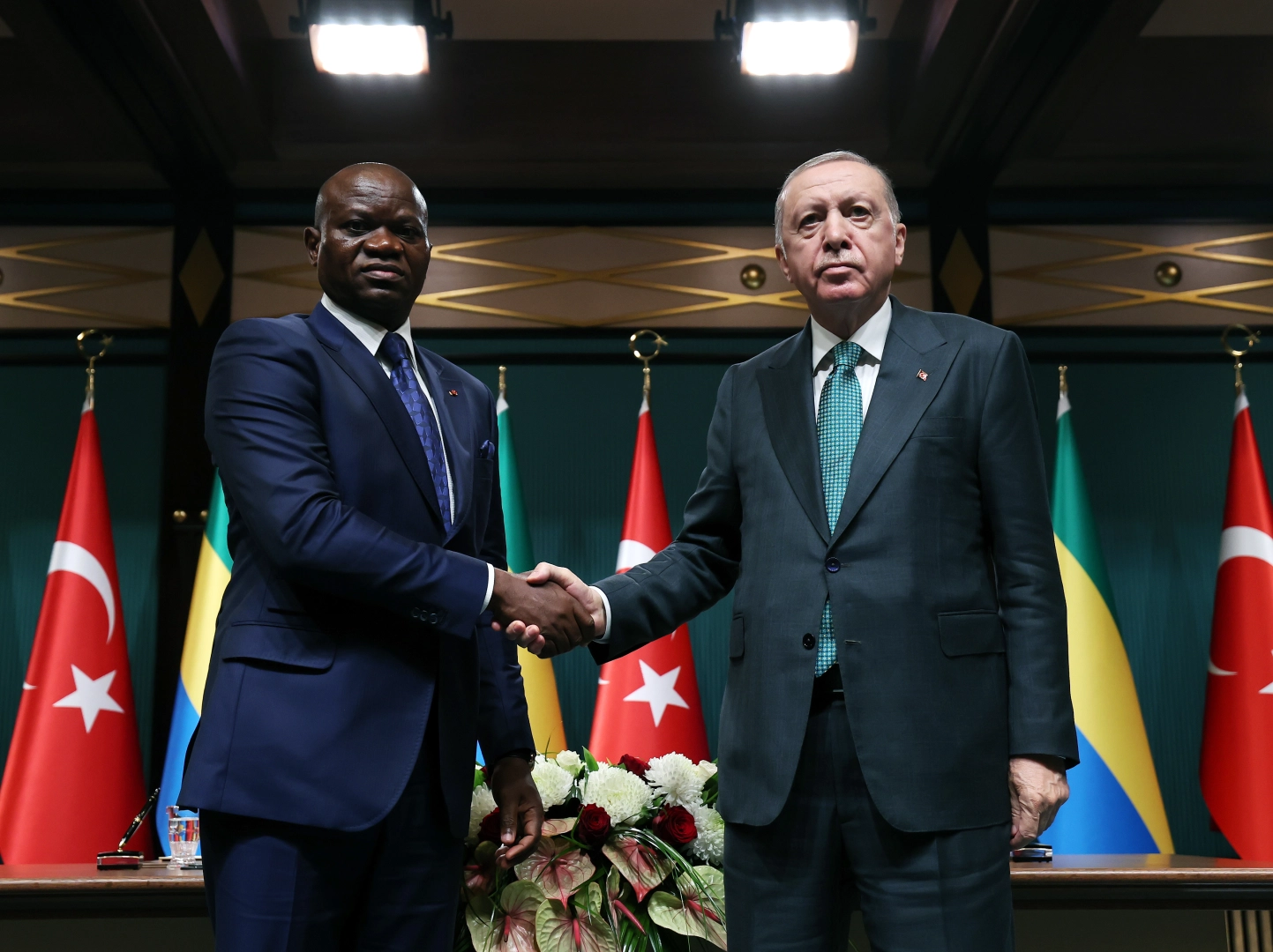 Aybala MELEK/ ANKARA, (DHA)- CUMHURBAŞKANI Recep Tayyip Erdoğan, "Önümüzdeki günlerde İsrail hükümeti üzerindeki baskının daha da artması için çalışacağız. Gazzeli kardeşlerimize yalnız olmadıklarını daha fazla hissettireceğiz" dedi. Cumhurbaşkanı Recep Tayyip Erdoğan ile Gabon Cumhurbaşkanı Brice Clotaire Oligui Nguema, Cumhurbaşkanlığı Külliyesi'nde gerçekleştirilen anlaşmaların imza törenini gerçekleştirdi. Törenin ardından iki lider, ortak basın toplantısı düzenledi. Cumhurbaşkanı Erdoğan, "Cumhurbaşkanı Sayın Nguema ve heyetini Türkiye'de ağırlamaktan büyük bir memnuniyet duyuyorum. Gabon, bölgesinin istikrarına katkıda bulunan, doğal zenginlik ve çeşitliliğe sahip, uzun yıllardır iş birliği içinde bulunduğumuz dost bir ülkedir. Bu dostluğumuzu karşılıklı ziyaretlerle daha da geliştiriyoruz. Bildiğiniz üzere Gabon, 2023 yılında girdiği geçiş dönemini müteakip Cumhurbaşkanlığı seçimlerini başarılı şekilde gerçekleştirdi. Önümüzdeki aylarda yapılacak parlamento seçimlerinin de ülkenin istikrar ve huzuruna katkı sunmasını diliyorum. Halkın güçlü desteğini alan Cumhurbaşkanı Sayın Nguema'yı bir kez de huzurlarınızda tebrik etmek istiyorum. Bugün yaptığımız ikili ve heyetler arası görüşmelerde aramızdaki iş birliği potansiyelini ayrıntılı şekilde değerlendirdik. Biraz önce imzaladığımız anlaşmalarla ilişkilerimizi ileriye taşıma irademizi teyit ettik" dedi. 'GABON'LA TECRÜBEMİZİ PAYLAŞMAYA HAZIRIZ' Son dönemde inşaat ve enerji alanlarında Gabon'da önemli projelerin alındığını kaydeden Erdoğan, "Müteahhitlerimizin üstlendiği projelerin toplam değeri 2,5 milyar doları aştı. Sayın Nguema'nın önderliğindeki kalkınma stratejisi kapsamında bilhassa konut, enerji, dijital dönüşüm ve madencilik gibi alanlarda özel sektörümüzün görev almaya hazır olduğunu kendilerine ifade ettim. Aynı şekilde tarım, balıkçılık, bilim ve teknoloji gibi alanlarda da Gabon'la tecrübemizi paylaşmaya hazırız" diye konuştu. 'DİPLOMATİK TEMSİL AĞIMIZ, GÜÇLÜ İRADEMİZİN EN AÇIK İŞARETİDİR' Cumhurbaşkanı Erdoğan, Afrika'daki kardeş ülkelerle ilişkilerin sistematik bir çerçevede ilerletmeye kararlı olduklarını ifade ederek, "Türk Hava Yolları'nın doğrudan uçtuğu Gabon'da, Türkiye Maarif Vakfı'mızın 2018’den beri sürdürdüğü hizmetleri çok değerli görüyorum. Halen 700'e yakın öğrencinin eğitim aldığı okulun kapasitesini artırmaya ve yeni eğitim kurumları açmaya hazırlanıyoruz. Gabon, Afrika kıtasında FETÖ'yle mücadelemize en hızlı destek veren ülkelerin başında geliyor. Kendilerine bu vesileyle bir kez daha teşekkür ediyorum. Afrika'daki dost ve kardeş ülkelerle ilişkilerimizi bütüncül, kurumsal ve sistematik bir çerçevede ilerletmeye kararlıyız. Afrika'nın sorunlarına Afrikalı çözümler bulunması ilkesi çerçevesinde, eşit ortaklık ve kazan-kazan temelinde istikrara ve kalkınmaya katkıda bulunmayı sürdürüyoruz. Kıtanın dört bir yanını kucaklayan diplomatik temsil ağımız, bu güçlü irademizin en açık işaretidir. Afrika'da 2002 yılında sadece 12 büyükelçiliğimiz bulunurken, bugün 44 büyükelçiliğimiz kıtada faaliyet gösteriyor. Bu çerçevede Libreville Büyükelçiliğimizi de 2012’de faaliyete geçirmiştik. Afrika büyükelçiliklerinin sayısı bugün itibarıyla 38’e ulaşmış ve başkentimiz bu açıdan diplomatik bir merkez konumuna gelmiştir" dedi. 'ÖNCELİĞİMİZ, İNSANİ YARDIMLARIN ULAŞTIRILMASIDIR' Erdoğan, Gabon Nguema ile Gazze'deki soykırımı da görüştüklerini dile getirerek, "Afrikalı kardeşlerimizin Filistin halkıyla güçlü dayanışması malumdur. İsrail'in Gazze'de 22 aydır sürdürdüğü katliam politikasına en net tepkilerin geldiği bölgelerden biri de Afrika kıtasıydı. Masum çocukların, açlıktan öldüğü, gıda yardımı almak için toplanan sivillerin bilerek kurşunlandığı bir vahşet tablosuna kimse sessiz kalamaz. Zerre kadar vicdanı, merhameti, insanlık onuru olan herkesin bu zulüm karşısında sabır taşı çatlamak üzeredir. Önceliğimiz, Gazzeli kardeşlerimize insani yardımların ulaştırılmasıdır" ifadelerini kullandı. 'FRANSA CUMHURBAŞKANI MACRON'U TEBRİK ETTİM' Erdoğan, bölgede ateşkesin sağlanması için gayret göstereceklerini belirterek, "İnsanlık cephesi olarak bu zulmün durdurulması için ne gerekiyorsa onu yapmakla mükellefiz. Son günlerde Fransa ve İngiltere başta olmak üzere Avrupa'dan yükselen insani tepkileri çok kıymetli buluyoruz. Filistin devletinin tanınmasına yönelik atılan her türlü adımı memnuniyetle karşılıyoruz. İsrail'in soykırım politikasına karşı verilecek en etkin cevaplardan biri, 1967 sınırları temelinde iki devletli çözüme destek olmaktır. Geçtiğimiz günlerde Fransa Cumhurbaşkanı Sayın Macron'u telefonla arayarak aldığı cesur karardan dolayı kendisine tebriklerimi ilettim. Gazze'deki insani felaketin önlenmesi hususunda Cumhurbaşkanı Sayın Nguema'nın da bizimle benzer duyguları paylaştığını gördüm. Önümüzdeki günlerde İsrail hükümeti üzerindeki baskının daha da artması için çalışacağız. Gazzeli kardeşlerimize yalnız olmadıklarını daha fazla hissettireceğiz. Bölgede bir an önce ateşkesin sağlanması ve kalıcı barışın tesisi için çok daha fazla gayret göstereceğiz" dedi. 'GAZZE KONUSUNDA SİYASİ POLEMİK PEŞİNDE DEĞİLİZ' Cumhurbaşkanı Erdoğan, "Biz hükümet olarak Gazze konusunda siyasi polemik peşinde değiliz. Gazze'deki kardeşlerimizin acısını hafifletmenin, yaralarına şifa olmanın, bir deri bir kemik kalmış Gazzeli o masum yavrulara yardım elimizi daha fazla uzatmanın derdindeyiz. Ülkemizdeki tüm siyasi aktörlerden de konuya aynı yüksek hassasiyetle yaklaşmalarını, Türkiy