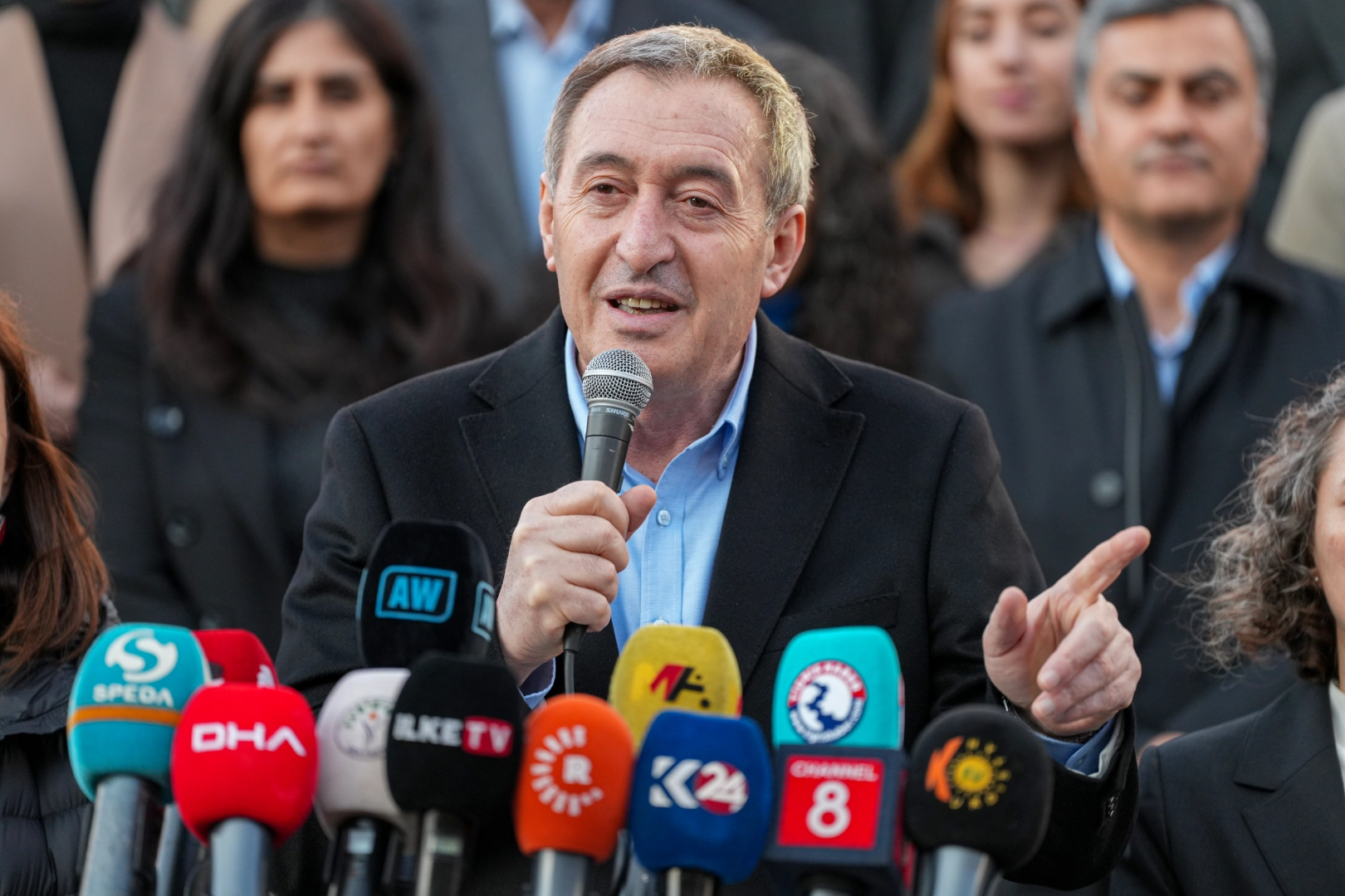 DEM Parti Eş Genel Başkanı Tuncer Bakırhan, partisinin Diyarbakır Büyükşehir Belediyesi önünde düzenlediği basın açıklamasına katıldı. Basın açıklamasına ayrıca Diyarbakır Büyükşehir Belediyesi Eşbaşkanları Serra Bucak ve Doğan Hatun ile yerine görevlendirme yapılan Van Büyükşehir Belediyesi eski eşbaşkanları Neslihan Şedal ve Abdullah Zeydan, Mardin Büyükşehir Belediyesi eski eşbaşkanı Devrim Demir ile DEM Partili il ve ilçe belediye eşbaşkanları dakatıldı.