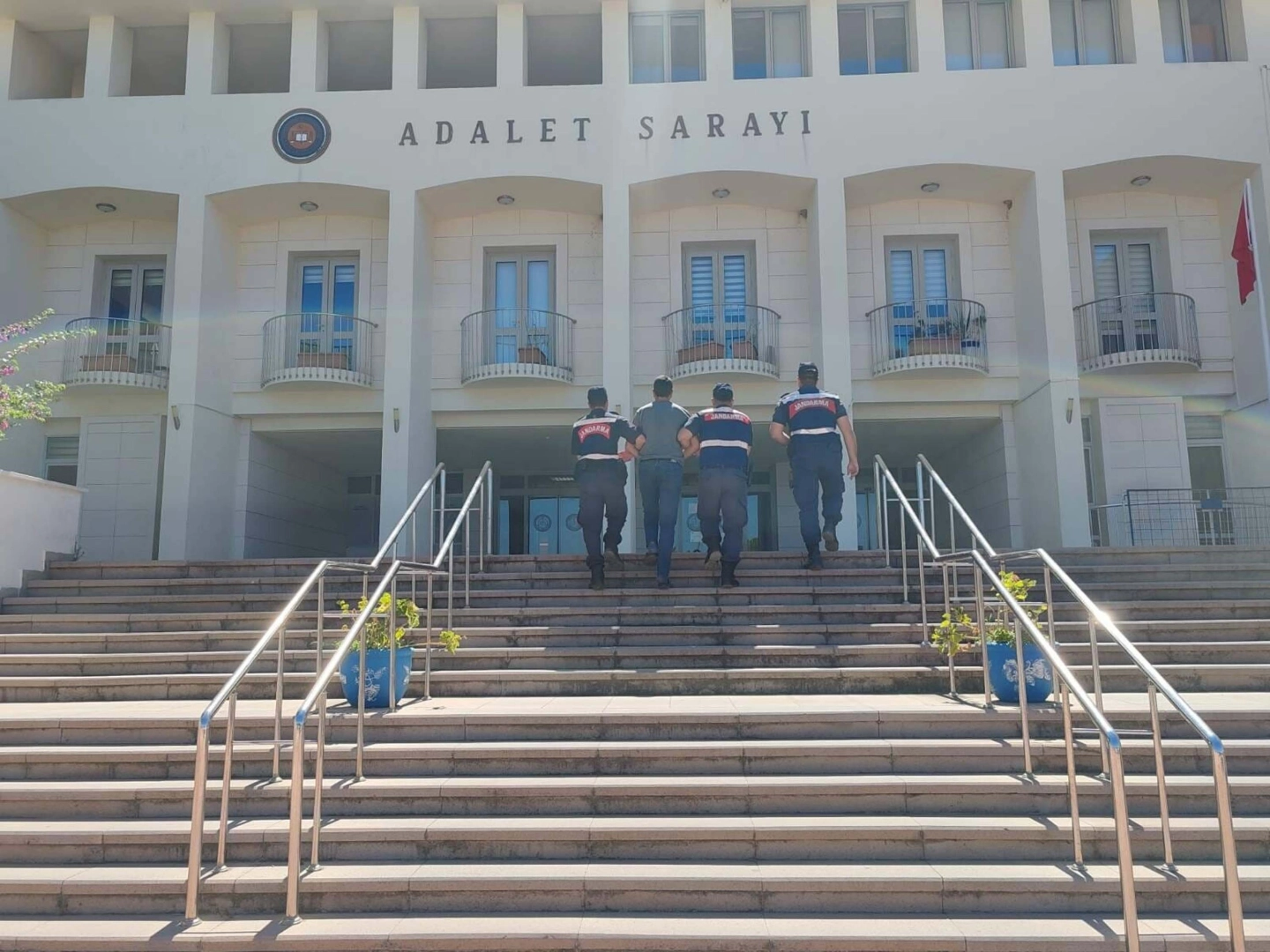 Fırat AKAY/BODRUM (Muğla), (DHA)-MUĞLA'nın Bodrum ilçesinde hakkında silahlı terör örgütü PKK/KCK’ya üye olma suçundan hakkında 6 yıl 6 ay kesinleşmiş hapis cezası bulunan Bayram Çağlayan (45), jandarmanın düzenlediği operasyonla yakalandı. Bodrum İlçe Jandarma Komutanlığı Terörle Mücadele Kısım Amirliği ekipleri ile Mumcular Jandarma Karakol Komutanlığı ekipleri, hakkında silahlı terör örgütü PKK/KCK'ya üye olma suçundan 6 yıl 6 ay kesinleşmiş hapis cezası bulunan Bayram Çağlayan'ın Bodrum'da olduğunu tespit etti. Teknik ve fiziki takibin ardından Çağlayan, saklandığı evde yapılan operasyonla yakalandı. Jandarmadaki işlemlerinin adından Çağlayan sevk edildiği adliyede çıkarıldığı mahkemece tutuklandı.(DHA)
