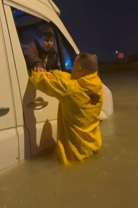 Yusuf YILDIZ/ ADANA, (DHA)- ADANA’da şiddetli sağanak, hayatı olumsuz etkiledi. Yağış nedeniyle minibüste mahsur kalan çocukların itfaiye ekipleri tarafından kurtarıldığı anlar görüntülendi.