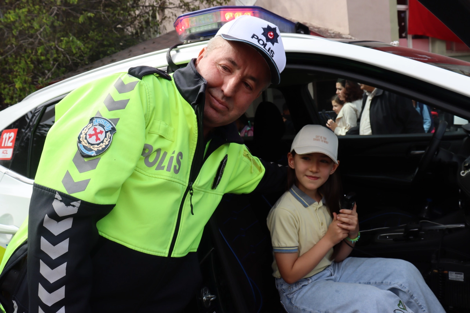 Şerife Serap KARA/AMASYA, (DHA)- AMASYA'da polis, okul çıkışı öğrencilere '23 Nisan Ulusal Egemenlik ve Çocuk Bayramı’nda anonslu sürpriz yaptı. Polislerin ekip aracına aldığı öğrenciler, anons yaparak arkadaşlarının bayramını kutladı.İl Emniyet Müdürlüğü Trafik Tescil ve Denetleme Şube Müdürlüğü ekipleri, Bahçeleriçi İlkokulu'nun önünde görev yaparken, çocuklara bayram coşkusunu yaşatmak için öğrencileri ekip aracına oturttu. Megafonu eline alan öğrenciler, arkadaşlarına “Bütün dünya çocuklarının 23 Nisan Ulusal Egemenlik ve Çocuk Bayramı kutlu olsun” diyerek anons yaptı. Çevredeki öğrenciler ve veliler, sürpriz kutlamaya alkışlarla eşlik etti. (DHA)