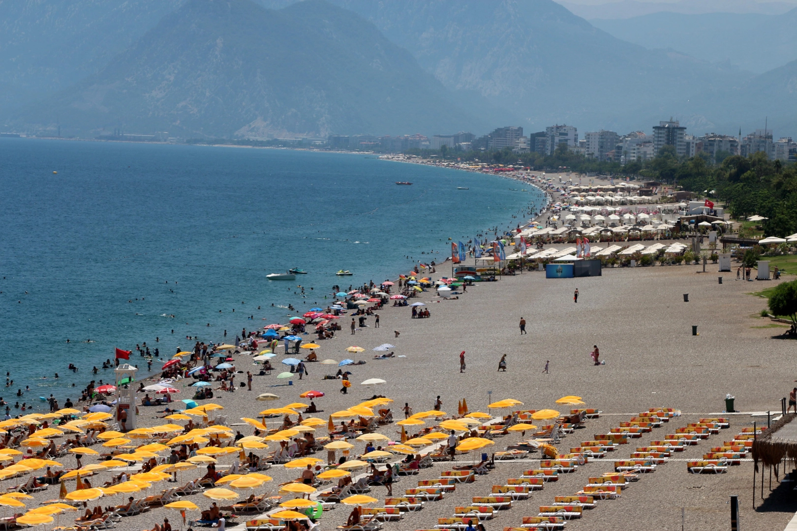 İrem GÜNEYBAZ/ANTALYA, (DHA)- ANTALYA'da 43 dereceye kadar çıkan sıcak havadan bunalanlar, serinlemek için Konyaaltı Sahili'ne akın etti. Geçen hafta mevsim normallerinde seyreden hava sıcaklığı, son günlerde aniden yükselerek mevsim normallerinin üzerine çıktı. Meteoroloji 4. Bölge Müdürlüğü verilerine göre; kentte hissedilen sıcaklık 43 dereceye kadar yükselirken, nem oranı yüzde 60'ları buldu. Deniz suyu sıcaklığı ise 29 derece olarak ölçüldü. Sıcak havadan bunalanlar, sabahın erken saatlerinden itibaren Konyaaltı Sahili'ni doldurdu. Kimi denize girerek serinlemeye çalıştı, kimi şemsiye altında güneşten korunmayı tercih etti. Sahildeki yoğunluktan şemsiye altlarında yer kalmadığı görüldü. SICAK HAVA DALGASI SÜRECEKUzmanlar, saat 11.00-16.00 arasında güneş altında uzun süre kalınmaması gerektiği konusunda uyarılarda bulundu. Güneş çarpmasına karşı özellikle yaşlılar ve çocukların dikkatli olması gerektiği belirtildi. Sıcak hava dalgasının 29 Haziran Cumartesi gününe kadar etkisini sürdüreceği tahmin ediliyor. (DHA)