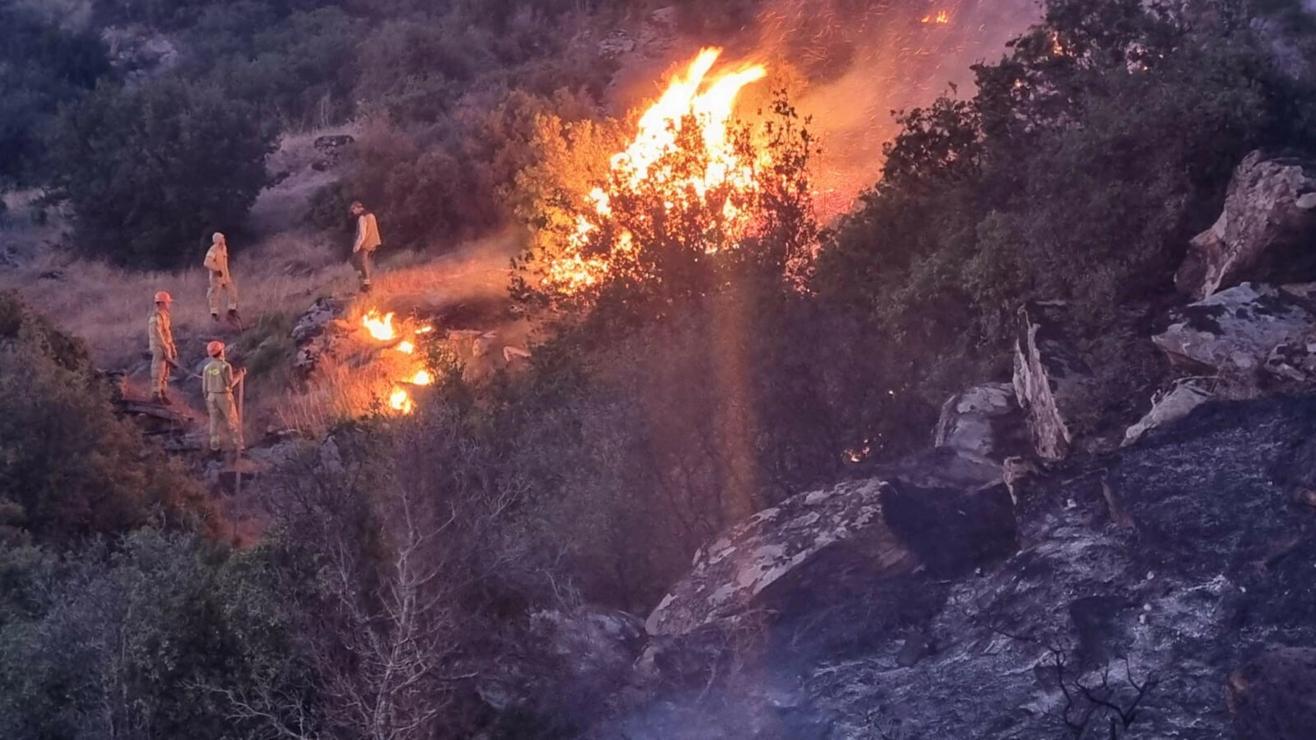 EKİPLER YANGINA KARADAN MÜDAHALEYE DEVAM EDİYORAydın'ın Bozdoğan ilçesinde Yazıkent Mahallesi Kızılçakır mevkisindeki makilikte saat 16.00 sıralarında çıkan yangını söndürme çalışmaları devam ediyor. Ekipler, gece olduğu için müdahaleye karadan devam ediyor. (DHA)Bahattin ALBAYRAK/ BOZDOĞAN (Aydın), (DHA)