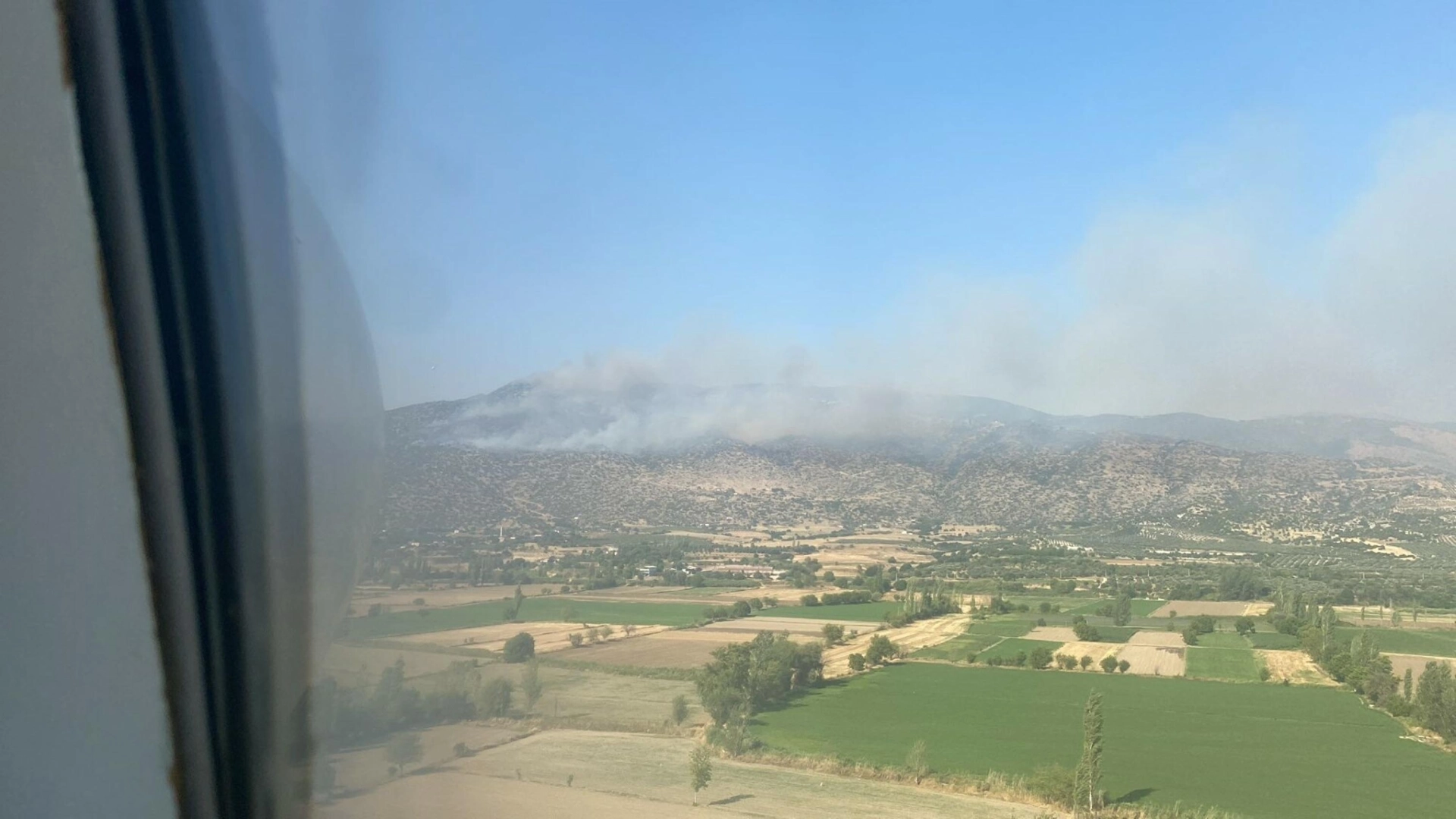 Bahattin ALBAYRAK/ BOZDOĞAN (Aydın), (DHA)- AYDIN'ın Bozdoğan ilçesinde orman yangın çıktı. Alevlere havadan hem de karadan müdahale ediliyor.Bozdoğan ilçesine Yazıkent Mahallesi Kızılçakır mevkisindeki makilikte saat 16.00 sıralarında yangın çıktı. Rüzgarın da etkisiyle alevler kısa sürede yayıldı. İhbar üzerine bölgeye Nazilli Orman İşletme Müdürlüğü ile itfaiye ekipleri sevk edildi. Karadan ulaşımın zor olduğu bölgedeki yangına 3 uçak ve 2 helikopterle havadan, 10 arazöz ve çok sayıda itfaiye aracıyla da karadan müdahale ediyor. Söndürme uçak ve helikopterleri Bozdoğan Kemer Barajı'nda su alarak alevlere sorti yapıyor. (DHA)
