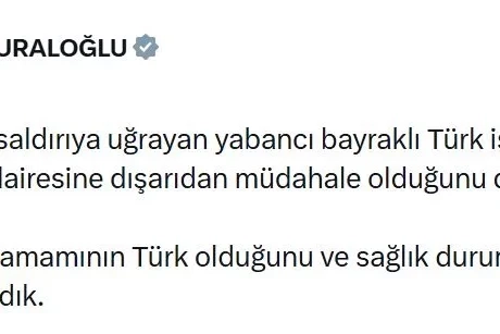 Bakan Uraloğlu, sanal medya hesabından yaptığı açıklamada, "Karadeniz'de saldırıya uğrayan yabancı bayraklı Türk işletenli bir geminin makine dairesine dışarıdan müdahale olduğunu düşünüyoruz. 27 mürettebatın tamamının Türk olduğunu ve sağlık durumlarının da iyi olduğu bilgisini aldık" ifadelerini kullandı. (DHA)
