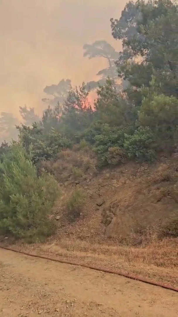 Şevki MORALI/EDREMİT,(Balıkesir), (DHA)- BALIKESİR'in Havran ilçesi kırsal Halılar Mahallesi'nde orman yangını çıktı. Alevlerin ilerlediği komşu Sarnıç Mahallesi tedbir amacıyla boşaltıldı. Alevlere havadan ve karadan müdahale sürüyor.Havran'ın kırsal Halılar Mahallesi'nde saat 10.30 sıralarında orman yangını çıktı. Çıkış nedeni henüz belirlenemeyen yangında alevler kısa sürede rüzgarın da etkisiyle yayıldı. İhbar üzerine bölgeye 203 personel ile 4 söndürme uçağı, 2 helikopter, 21 arazöz, 10 su ikmal aracı, 3 ilk müdahale aracı, 16 hizmet aracı, 11 itfaiye aracı, 5 dozer, 3 TOMA ve 3 treyler sevk edildi. Söndürme çalışmalarına çeşitli kamu kurum ve kuruşları da destek veriyor.Jandarma, alevlerin ilerlediği komşu kırsal Sarnıç Mahallesi'nde anons yaparak, köylülerden evlerini boşaltmalarını istedi. Evlerinden çıkmak zorunda kalan mahalleli, Havran ve Edremit ilçe merkezindeki yurtlara sevk edildi.Balıkesir Valisi İsmail Ustaoğlu da yangınla ilgili bilgi verip, söndürme çalışmalarının sürdüğünü bildirdi. (DHA)