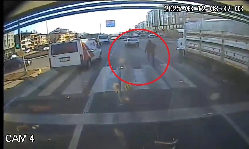 Aziz ÖNAL/ BİNGÖL, (DHA)- BİNGÖL’de otomobilinden inen sürücü, başka bir aracın çarptığı otomobili hareket etmeye başlayınca peşinden koştu. Sürücünün yaklaşık 100 metre peşinden koşarak hareket halindeyken otomobile tekrar bindiği o anlar güvenlik kamerasına yansıdı. Kaza, Bingöl-Muş Bulvarı’ndaki Hastane Kavşağı yakınlarında, trafik ışıklarında meydana geldi. Sürücüsünün kimliği ve plakası belirlenemeyen bir kamyon, freni tutmayınca kırmızı ışıkta bekleyen otomobile çarptı. Çarpmanın etkisiyle otomobil, önünde bekleyen başka bir araca çarptı. Kazanın hemen ardından, otomobilinde hasar oluşan sürücüsü araçtan indi. Ancak, freni tutmayan kamyon otomobile bir kez daha çarpınca araç hızla hareket etmeye başladı. Sürücü otomobilinin peşinden koşmaya başladı. Yaklaşık 100 metre koşan sürücü hareket halindeki otomobilinin kapısını açarak tekrar bindi. Daha sonra güvenli bölgeye çekerek park etti. O anlar halk otobüsünün güvenlik kamerasına yansıdı.