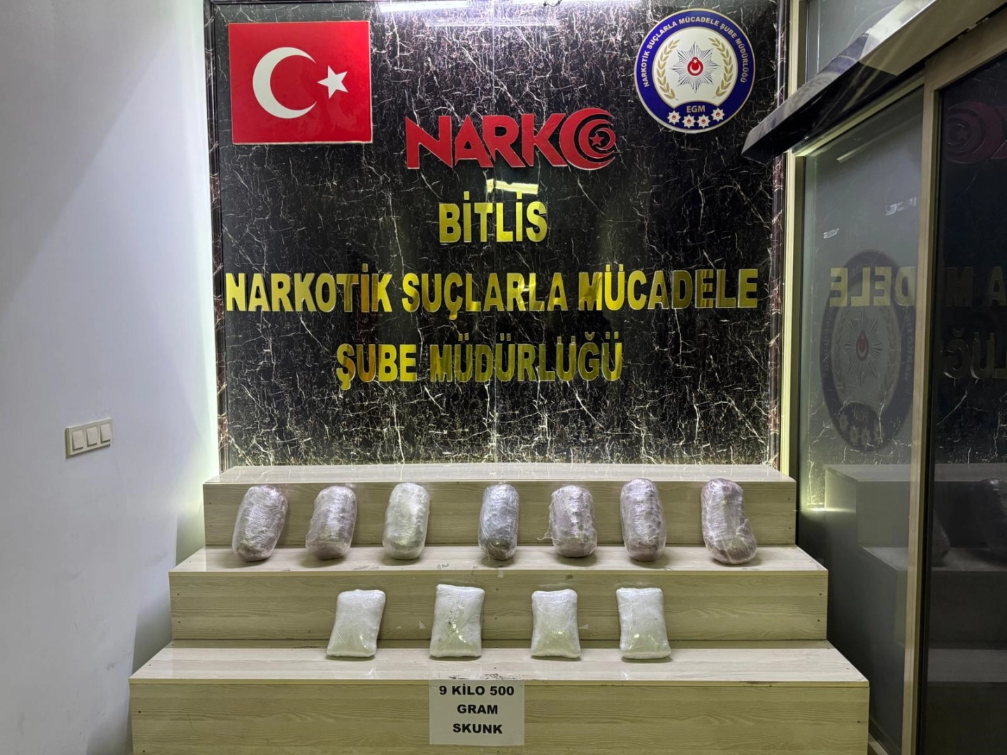 İl Emniyet Müdürlüğü Narkotik Suçlarla Mücadele Şubesi ekipleri, uyuşturucu tacirlerine yönelik çalışmalarına devam ediyor. Bu kapsamda Tatvan ilçesinde gerçekleştirilen yol kontrollerinde, polisin ‘dur’ ihtarına uymayan bir araç, kaçtı. Polisin takibi sonucu yakalanan araçta yapılan aramada 9 kilo 500 gram skunk ele geçirildi. Aynı çalışmalar kapsamında durdurulan başka bir araçta yapılan aramada ise yakıt deposuna gizlenmiş 8 kilogram skunk bulundu. Her iki olayla ilgili 3 şüpheli gözaltına alındı. Emniyet Müdürlüğü’ndeki işlemlerinin ardından adliyeye sevk edilen şüphelilerden 2’si çıkarıldıkları mahkemece tutuklanırken, 1'i ise adli kontrol şartıyla serbest bırakıldı. (DHA)