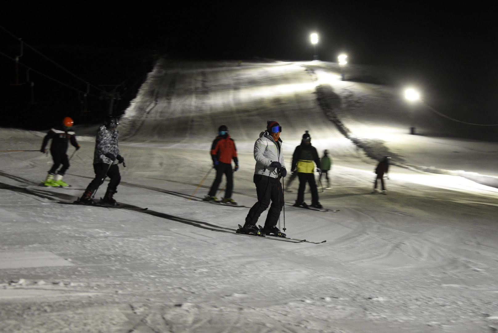 Bitlis Gençlik ve Spor İl Müdürlüğü tarafından El Aman Kayak Merkezi’nde yapılan ışıklandırma çalışmasıyla pistler gece de kullanıma açıldı. Kar yağışının ardından iftar sonrası aileleriyle birlikte kayak merkezine gelenler, aydınlatılan pistlerde kayak yapmanın keyfini yaşadı. Kayak bilmeyenler ise çocuklarıyla birlikte kızakla kayarak eğlendi.