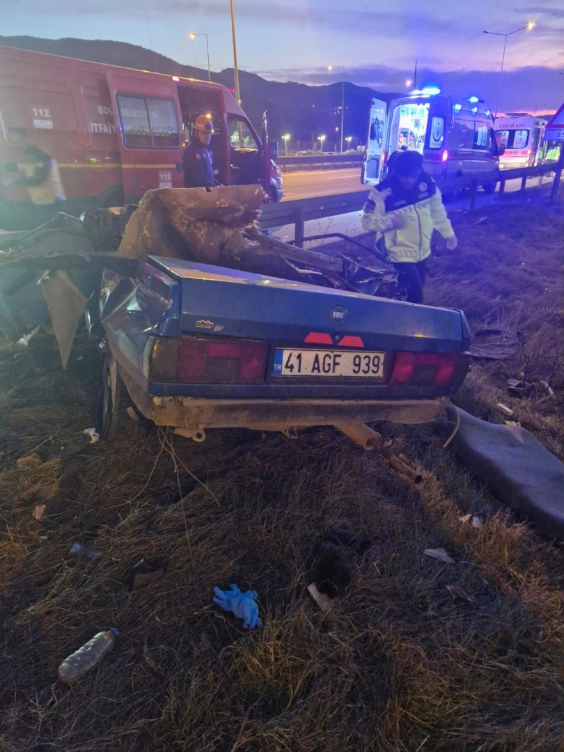 Mutlu YUCA/ BOLU, (DHA)- BOLU'da, Anadolu Otoyolunda sürücüsünün kontrolünden çıkan otomobilin dinlenme tesisi önündeki bariyerlere çarptığı kazada 2 kişi yaşamını yitirdi, 1 kişi ağır yaralandı.Kaza, saat 18.45 sıralarında Anadolu Otoyolunun Yedigöller Dinlenme Tesisi önünde meydana geldi. Ankara yönünden İstanbul istikametine gitmekte olan M.B. yönetimindeki 41 AGF 939 plakalı otomobil, sürücüsünün direksiyon kontrolünü yitirmesi sonucu dinlenme tesisi önündeki bariyerlere çarparak, metrelerce savrulup takla attı. Kazada otomobil hurdaya dönerken, ihbarla bölgeye jandarma, sağlık ve itfaiye ekibi sevk edildi. Kazada otomobil sürücüsü M.B. ağır yaralanırken, araçta bulunan E.D. ve A.K.’nın yaşamını yitirdiği belirlendi. M.B., sağlık ekipleri tarafından kaldırıldığı İzzet Baysal Devlet Hastanesi Köroğlu Ünitesinde tedaviye alındı. Kazada yaşamını yitirenlerin cenazesi, Cumhuriyet savcısının incelemesinin ardından hastanenin morguna kaldırıldı. Kazayla ilgili soruşturma başlatıldı. (DHA)