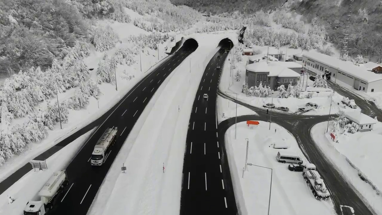 KAR YAĞIŞI ETKİSİNİ AZALTTIBolu Dağı’nda cumartesi günü başlayan kar yağışı bölgede etkisini azaltırken, ulaşımda aksama yaşanmıyor. Karayolları ekiplerinin kar küreme çalışmasıyla D-100 yolu ve Anadolu Otoyolu'nda kar kalmadı. Bölgede tuzlama çalışması sürüyor. Bu arada Anadolu Otoyolu'nun Bolu Dağı Tüneli mevkisinde son durum dronla havadan görüntülendi. (DHA)