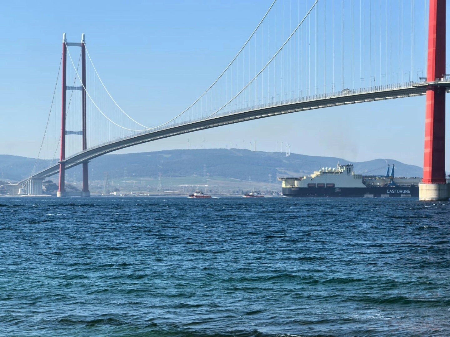 Nazif Cemhan ŞEN-Orhan AKTUĞ/ÇANAKKALE, (DHA)-ÇANAKKALE Boğazı'ndan geçen Bahama Adaları bayraklı 'Castorone' isimli boru döşeme gemisi, Ege Denizi'ne doğru yol aldı.Karadeniz'de bulunan doğal gazın taşınması için derin sularda boru serim işlemi yapan 'Castorone' isimli gemi, Çanakkale Boğazı'ndan geçti. İstanbul'dan İtalya'ya giden Bahama Adaları bayraklı 325 metre uzunluğunda ve 39 metre genişliğinde, 102 bin 32 groston ağırlığındaki gemi, saat 14.30'da Marmara Denizi'nden Çanakkale Boğazı'na giriş yaptı. Saat 17.00 sıralarında Çanakkale önlerinde olan geminin geçişi sırasında Çanakkale Boğazı güney-kuzey yönlü saat 05.30 ile 17.00 arası trafiğe kapatıldı. Gemiye, boğaz geçişi sırasında 'Kurtarma-15', 'Kurtarma-18', 'Kurtarma-20' ve 'Türkeli' römorkörleri eşlik etti. Boğazdan çıkan gemi, Ege Denizi'ne doğru yol aldı. (DHA)