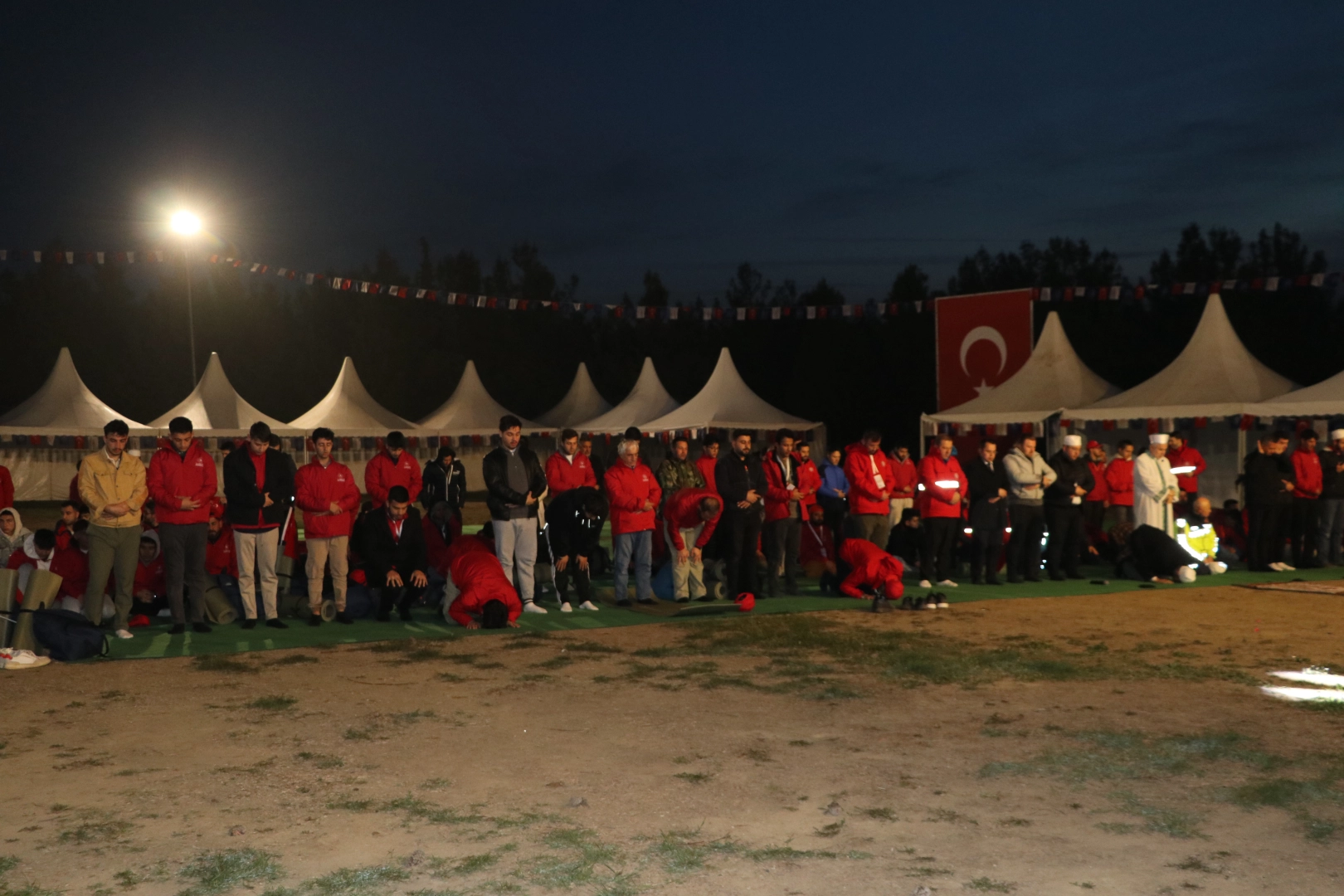 Nazif Cemhan ŞEN/ÇANAKKALE, (DHA)- ÇANAKKALE Kara Savaşları'nın 110'uncu yıl dönümü anma törenleri kapsamında Gençlik ve Spor Bakanlığı tarafından 57'nci Alay Vefa Yürüyüşü düzenlendi. Gençlik ve Spor Bakan Yardımcısı Safa Koçoğlu, yürüyüş öncesi katılımcılara, 57'nci Alay askerlerinin yemeği olan kırık buğday çorbası dağıttı.Gençlik ve Spor Bakanlığı tarafından Çanakkale Kara Savaşları'nın 110'uncu yıl dönümü anma törenleri kapsamında 57'nci Alay Vefa Yürüyüşü düzenlendi. Tarihi Gelibolu Yarımadası'ndaki Eceabat ilçesi Kocadere köyündeki kamp alanında, yürüyüş öncesinde ezan okundu ve 110 yıl önce şehit olan askerler gibi sabah namazı kılındı. Gençlik ve Spor Bakan Yardımcısı Safa Koçoğlu, 57'nci Alay askerlerinin yemeği olan kırık buğday çorbası dağıttı. Bakan Yardımcısı Koçoğlu, "Çanakkale ruhunu yaşamak ve yaşatmak adına Gençlik ve Spor Bakanlığı olarak her yıl 24-25 Nisan’da Kocadere’den Conkbayırı’na genç arkadaşlarımızla birlikte yürüyüşümüze başlıyoruz. Ecdadımızın izinde yürüyoruz. Dün akşam mehteran gösterimiz, tiyatrolarımız, kum sanatı gösterimiz vardı. Gençlerle bir aradaydık. Bugün yine gençlerimizle kol kola el ele ülkemizin dört bir yanından gelen genç arkadaşlarımızla ecdadımızı anacağız. Tarih şuurunu geliştirmek adına buradayız. Gençlik ve Spor Bakanlığı olarak yıl içerisinde Türkiye genelinde bu tür tarih bilincini ve ruhunu yansıtan etkinlikler yapıyoruz” diye konuştu.57’nci Alay Komutanı şehit Yarbay Hüseyin Avni Bey’in torunu Hüseyin Avni Tanman ise, "57’nci Alay hepimizin bildiği gibi 27’nci Alay ile birlikte Anzakları durduran Çanakkale Savaşları’nın kazanılmasına vesile olan bir mihenk taşı. Burada olmaktan çok mutluyum. 57’nci Alay Vefa Yürüyüşü’ne ilk defa katılıyorum. Bütün katılımcılarla birlikte burada olmaktan çok mutluyum. Çok derin hisler içerisindeyim” dedi.Çorba dağıtımının ardından Bakan Yardımcısı Safa Koçoğlu, Çanakkale Valisi Ömer Toraman, Çanakkale Savaşları Gelibolu Tarihi Alan Başkanı İsmail Kaşdemir ve beraberindekiler, yaklaşık 5 kilometre sürecek 57'nci Alay Vefa Yürüyüşü'ne başladı. Yürüyüş Conkbayırı’nda sona erdi. (DHA)