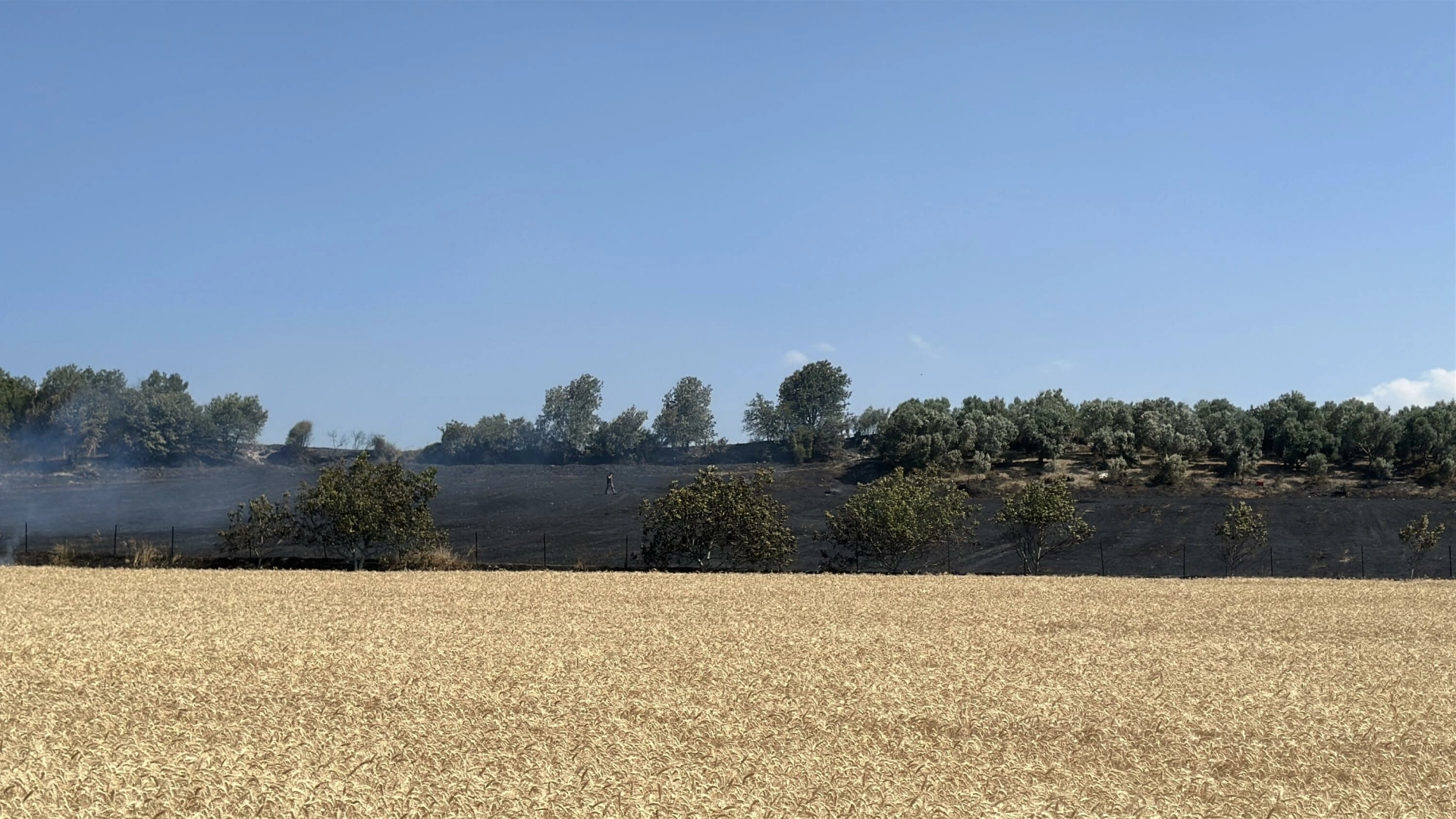 YANGIN KONTROL ALTINA ALINDIÇanakkale'de merkeze bağlı Özbek köyü yakınlarındaki tarım arazisinde çıkan yangın, havadan 4 uçak, 1 helikopter, karadan ise çok sayıda arazöz, itfaiye ve orman personeliyle müdahalesinin ardından saat 16.45 sıralarında kontrol altına alındı. Yangında yaklaşık 130 dönüm ekili buğday tarlası ile anız alanı zarar gördü. Bölgede soğutma çalışmaları sürüyor. SAMAN BALYA MAKİNESİ KAYNAKLIÇanakkale Valiliği tarafından yapılan açıklamada, "İlimiz merkez Özbek Köyü'nde 19 Haziran 2025 Perşembe günü saat 15.30 sıralarında saman balya makinesinden kaynaklanan yangın meydana gelmiştir. Yangında yaklaşık 130 dönüm ekili buğday tarlası ve anız alanı zarar görmüş olup yangın söndürülmüştür. Saman balya makinesi operatörü hakkında adli işlemlere başlanmıştır" denildi. (DHA)Nazif Cemhan ŞEN/ÇANAKKALE, (DHA)FOTOĞRAFLI
