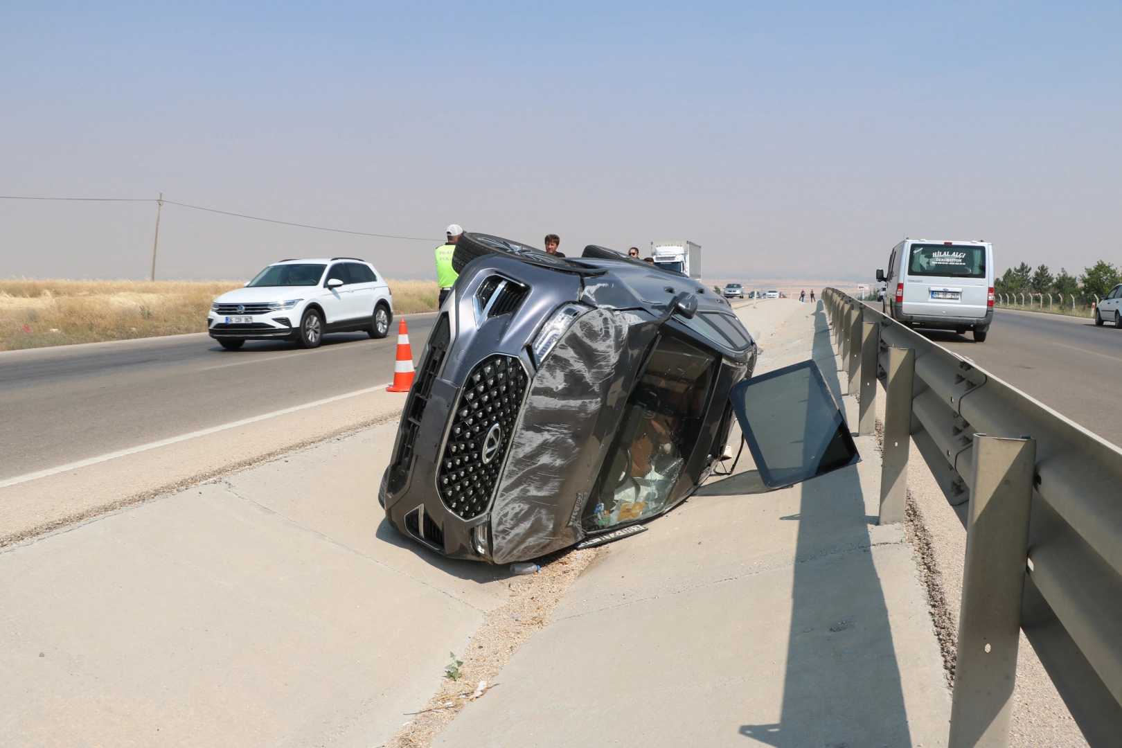 Ahmet DAĞLI/SANDIKLI (Afyonkarahisar), (DHA)- AFYONKARAHİSAR'ın Sandıklı ilçesinde refüjdeki su kanalına devrilen cipteki 1 kişi öldü, 3 kişi yaralandı.Kaza, saat 10.00 sıralarında Afyonkarahisar- Antalya kara yolunun 55'inci kilometresindeki Sandıklı Organize Sanayi karşısında meydana geldi. Olgu A.’nın kontrolünü yitirdiği 34 HYZ 063 plakalı cip, yoldan çıkarak refüjdeki su kanalına devrilip sürüklendi. Kazada, sürücü Olgu A. ile İclal A., Kutay A. ve Bedia A. yaralandı. Çevredekilerin ihbarı üzerine bölgeye jandarma, polis ve sağlık ekibi sevk edildi. Yaralılar, ambulanslarla Sandıklı Devlet Hastanesi'ne kaldırıldı. Tedaviye alınan yaralılardan İclal A. doktorların tüm çabasına karşın kurtarılamadı. Diğer yaralıların hayati tehlikesinin olmadığı öğrenildi. İclal A.'nın cansız bedeni savcılığın incelemesi sonrası hastane morguna konuldu. Kazayla ilgili inceleme başlatıldı. (DHA)