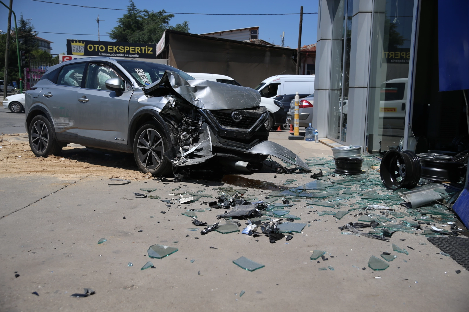 Sarp DEMİRHAN/ESKİŞEHİR, (DHA)- ESKİŞEHİR'de sürücüsünün kontrolünden çıkan cip, park halindeki otomobile ve cenaze aracına çarpıp, lastik satışı yapan iş yerine daldı. Cipin sürücüsü ile iş yeri çalışanının yaralandığı kaza, güvenlik kamerasına yansıdı.Kaza, Odunpazarı ilçesi Cumhuriyet Bulvarı'nda meydana geldi. T.K.’nin kontrolünü yitirdiği 06 DSR 865 plakalı cip, yol kenarında park halindeki 26 NE 880 plakalı otomobile ve seyir halindeki cenaze aracına çarptı. Savrulan cip, lastik satışı yapan iş yerine daldı. Kazada sürücü T.K. ile iş yeri çalışanı S.B. adlı kadın yaralandı. İhbarla bölgeye sevk edilen sağlık ekiplerinin ilk müdahalesini yaptığı yaralılar, ambulansla hastaneye kaldırılıp tedaviye alındı.İş yeri çalışanlarından Niyazi Erşahin (52), sürücünün direksiyon başında rahatsızlık geçirdiğini tahmin ettiklerini belirterek, "Büyük ihtimalle hastalık veya kalp krizi geçiriyordu. Çünkü o denli bir aracın hiç frene basmadan buraya, dükkana girmesinin başka bir mantığı yok. Kavşağa gelmeden bir araca çarpıyor, oradan kurtuluyor, cenaze arabasıyla refüje çarpıyor, oradan da direkt bizim dükkana geldi" dedi.Kaza, iş yerinin güvenlik kamerasına yansıdı. (DHA)