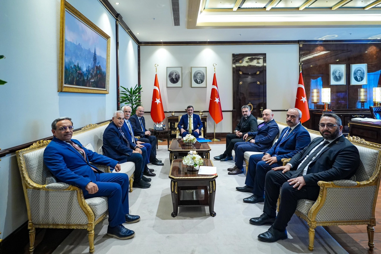 ANKARA, (DHA)- CUMHURBAŞKANI Yardımcısı Cevdet Yılmaz, Ankara Ticaret Odası (ATO) yönetimi ve Türkiye Ayakkabı Sanayicileri Derneği üyeleriyle bir araya geldi. Cumhurbaşkanı Yardımcısı Yılmaz, Cumhurbaşkanlığı Külliyesi’nde Ankara Ticaret Odası yönetimi ve Türkiye Ayakkabı Sanayicileri Derneği üyeleriyle gerçekleştirdiği toplantılara ilişkin sosyal medya üzerinden yaptığı paylaşımda, “Verimli toplantılar gerçekleştirdik. Her iki görüşmemizde de, reel sektör temsilcilerimizle sektörlerine ilişkin talep, görüş ve önerileri kapsamlı bir şekilde değerlendirdik. Her fırsatta reel sektör temsilcilerimizle istişareye devam edecek, birlikte çalışmayı sürdüreceğiz” dedi. (DHA)
