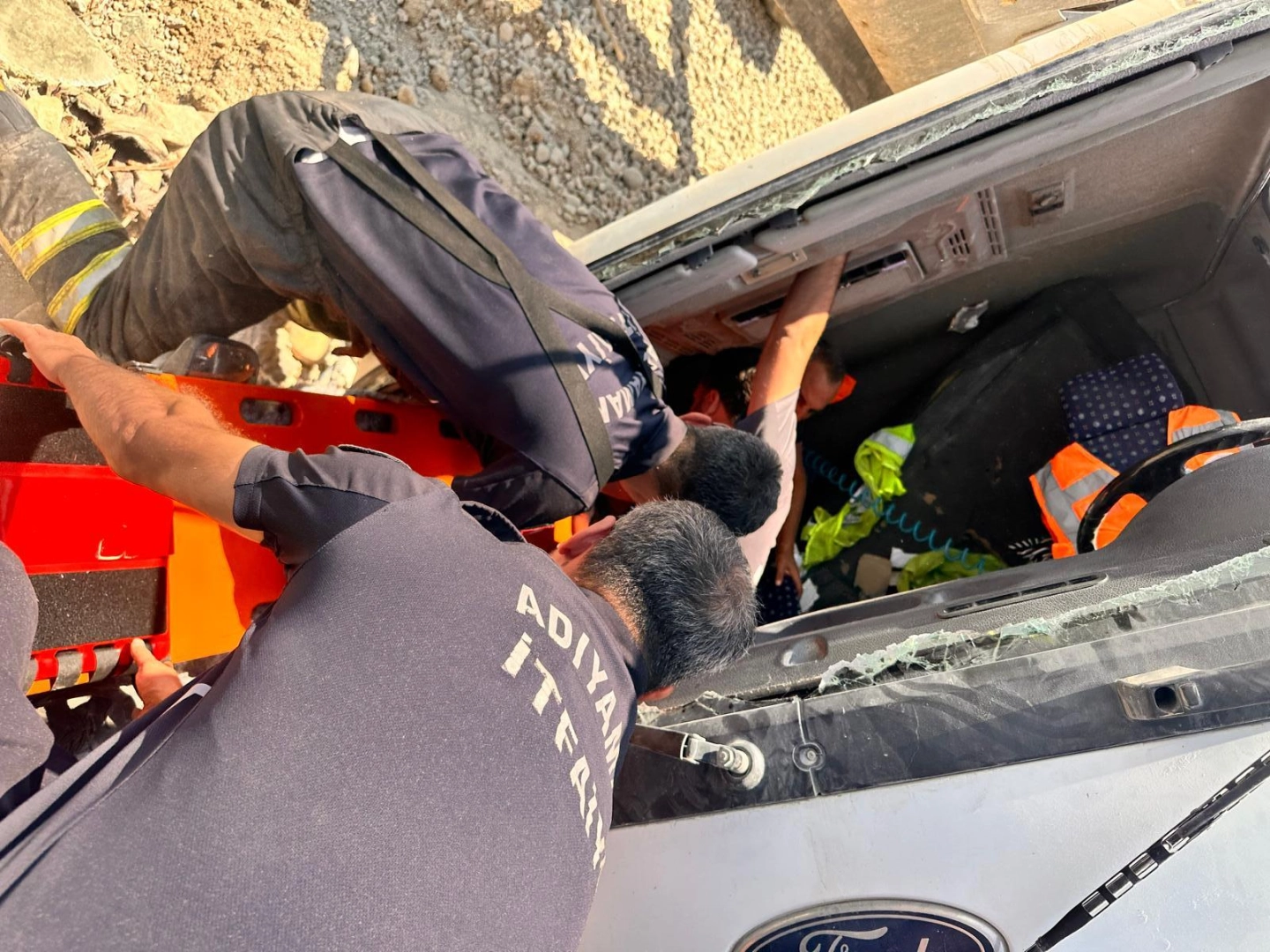 Mahir ALAN/ADIYAMAN, (DHA)- ADIYAMAN'da devrilen hafriyat kamyonunda sıkışan şoför Abdullah A., itfaiyenin 30 dakika süren çalışması ile bulunduğu yerden çıkartılarak hastaneye götürüldü. Kaza, öğle saatlerinde Mara Mahallesi'nde meydana geldi. Abdullah A.’nın kontrolünü yitirdiği plakası öğrenilemeyen hafriyat kamyonu devrildi. Kazayı görenler, durumu 112 Acil Çağrı Merkezi ekiplerine bildirdi. İhbarla gelen itfaiye ekipleri araçta sıkışan şoförü 30 dakika süren çalışmanın ardından çıkardı. Sağlık görevlileri tarafından Adıyaman Eğitim ve Araştırma Hastanesi'ne kaldırılan Abdullah A.'nın durumunun iyi olduğu belirtildi.Kazayla ilgili soruşturma başlatıldı. (DHA)