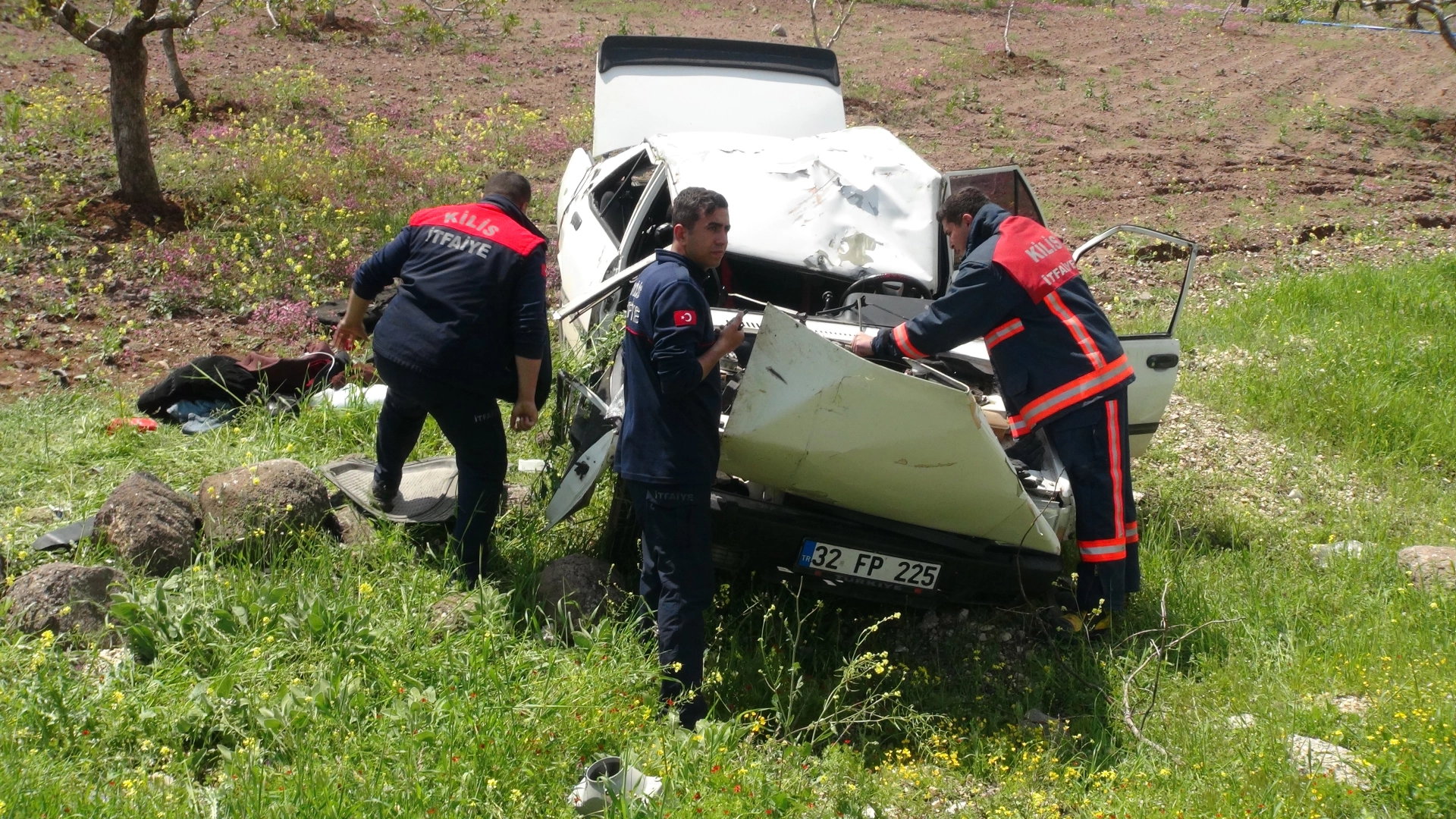 Kaza, öğle saatlerinde, Kilis-Elbeyli kara yolunun 10'uncu kilometresinde meydana geldi. M.G.Ş.'nin direksiyon hakimiyetini kaybettiği 32 FP 225 plakalı otomobil, fıstık bahçesine devrildi. İhbar üzerine bölgeye sağlık, itfaiye ve jandarma ekipleri sevk edildi. Sağlık görevlilerinin kontrolünde, sürücü ile otomobildeki F.Ş., C.E. ve M.G.'nin yaralandığı belirlendi. Yaralılar, Prof. Dr. Alaeddin Yavaşca Devlet Hastanesi'ne kaldırıldı.