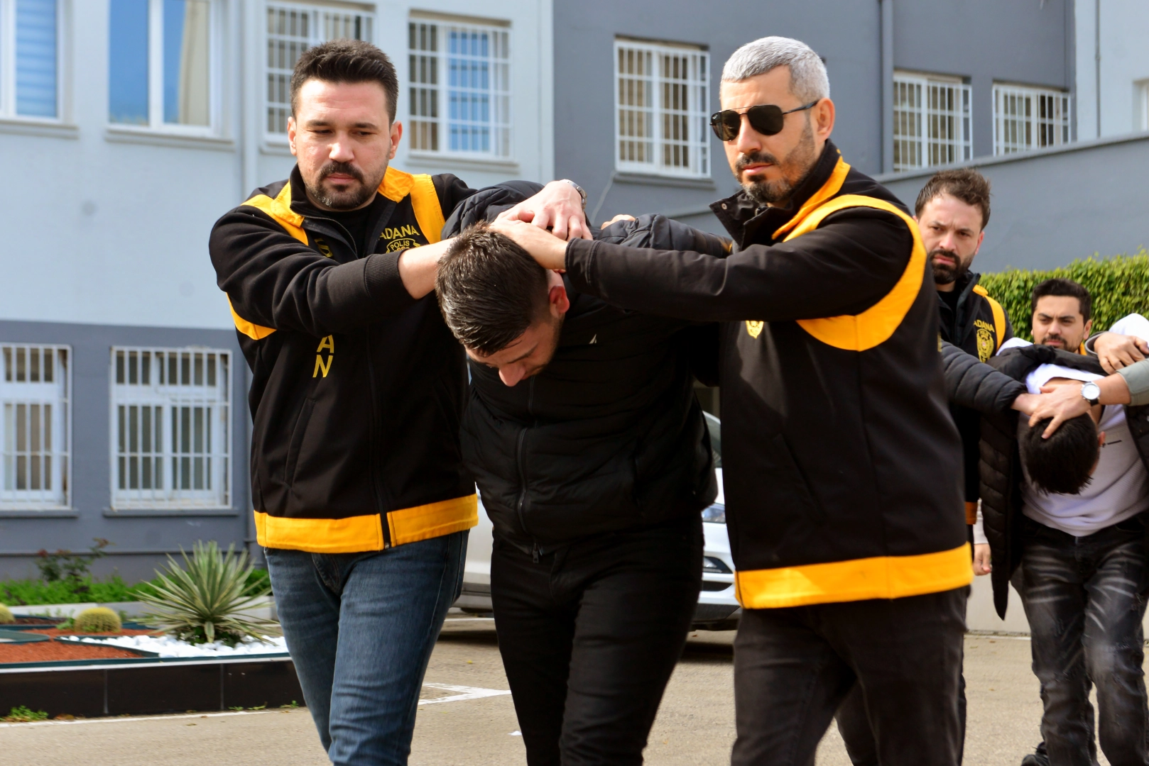 Saldırıyı öğrenen M.A.B.'nin ihbarıyla Seyhan İlçe Emniyet Müdürlüğü Suç Önleme ve Soruşturma Büro Amirliği ekipleri, şüphelilerin yakalanması için çalışma başlattı. Olay yerinde inceleme yapan ekipler, yerde kontak anahtarı buldu. Plakasının sahte olduğu belirlenen otomobil de bir sokakta park halinde bulundu. Kontak anahtarının, olayda kullanılan otomobile ait olduğunu olabileceğini tahmin eden ekipler, aracın bulunduğu yerde önlem aldı. Aracın yanına çilingirle gelen Mertcan Ç. ile B.N., ekipler tarafından yakalandı. Şüphelilerin aracı çalışır vaziyette bıraktıkları, olaydan sonra yollarına devam ettikleri ancak park edilen otomobili daha sonra çalıştıramadıklarını öğrenildi.