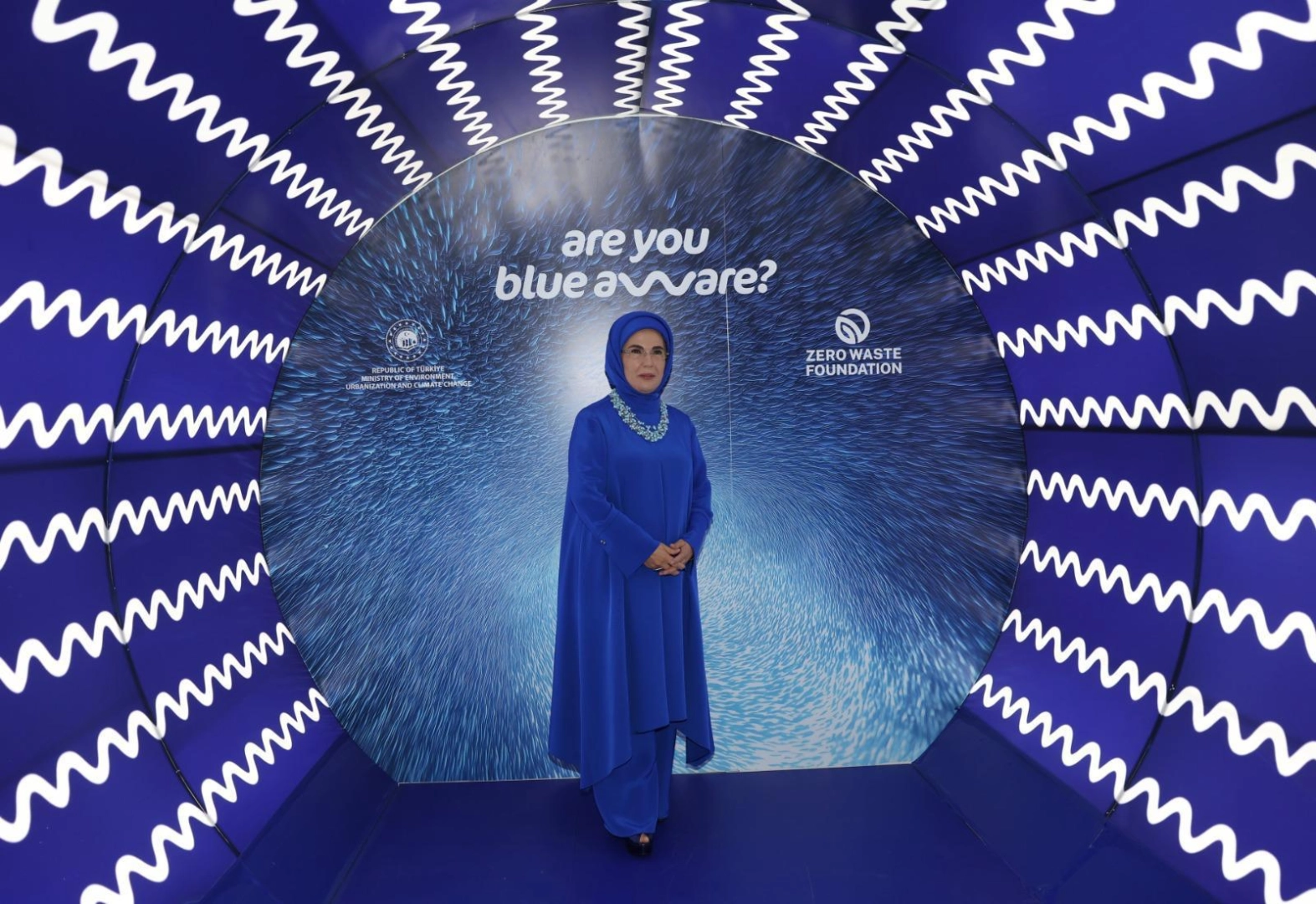 Emine Erdoğan, Türkiye olarak, iklim krizindeki paylarının çok düşük olmasına rağmen çözümün parçası olmak için çalıştıklarını ve 2017'de başlattıkları Sıfır Atık hareketinin, bu hedefin en net göstergesi olduğunu belirterek, "Bu yolun başında ülkemizde yüzde 13 olan geri kazanım oranımızı yüzde 36 seviyesine çıkardık. Bugüne kadar 74,5 milyon ton atığı geri kazandık. Ekonomimize 256 milyar lira kazanç sağladık. Sıfır Atık Mavi hareketi kapsamında, yaklaşık 285 bin ton deniz çöpünü topladık" dedi.
