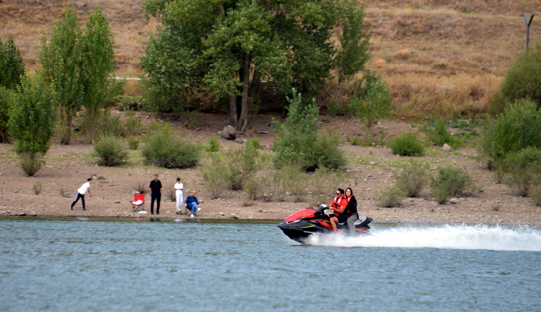Salih TEKİN/ERZURUM, (DHA)- ERZURUM'un Palandöken ilçesinde 2 bin 300 metre rakımda sulama amaçlı yaptırılan Tekederesi Göleti, piknikçilere jet ski keyfi sunuyor. Belediyeye ait sosyal tesislere hafta sonları pikniğe gelenler, jet skiyle gölette tur atıyor.Dünyanın önde gelen kayak merkezlerinden Konaklı Kayak Merkezi'nin hemen yakınında, kent merkezine yaklaşık 20 kilometre uzaklıktaki Tekederesi Göleti, 1993 yılında DSİ tarafından sulama amaçlı yapıldı. Kırsal mahallelerin arazilerinin sulanmasında kullanılan gölet, daha sonra Erzurum Büyükşehir Belediyesi'ne tahsis edildi. Belediye, göleti sosyal bir yaşam alanına dönüştürerek, piknik alanı olarak hizmete açtı. Kavak, çam ve değişik ağaç türleriyle kaplı gölet ve çevresi, Erzurumluların şehrin gürültüsünden uzaklaştıkları bir alan haline geldi. Hafta sonları onlarca Erzurumlunun piknik yaptığı gölette jet ski turları da düzenlenmeye başlandı. 2 bin 300 metre rakımdaki gölete gelen misafirler, belediyenin iştiraklerinden Ejder 3200 A.Ş.'nin görevlileri Uğurcan Karaca (29) ve Suat Uluç (24) tarafından alınan güvenlik önlemleri altında jet skiye biniyor. Ziyaretçiler, jet skilerle 5 ile 7 dakika süreyle tur atmanın keyfini yaşıyor.Üniversite sınavlarına hazırlandığını belirten Berivan İlter (20), ilk defa bindiği jet skiyle büyük heyecan yaşadığını söyledi. Genellikle deniz sahillerinde görülen jet ski turlarının Erzurum'da da olduğunu ifade eden Berivan İlter, "Uzağa gitmeye gerek yok. Bu heyecanı Erzurum'da da yaşayabilirsiniz" dedi.Afganistan'dan eğitim için Erzurum'a geldiğini ifade eden Marziye Mousavi (19) ise "Su jetini ilk defa denedim çok güzel ve heyecanlıydı. İlk defa bindim, korkmadım. Çünkü suyu ve denizi seviyorum" diye konuştu.Gölette arama-kurtarma görevlisi olarak çalıştığını belirten Suat Uluç, kışın kayakla yaz aylarında ise jet skiyle çalıştıklarını belirtti. Gölette jet skiye ilginin fazla olduğunu ifade eden Uluç, "Tekederesi Göleti’nde su jetinin yanı sıra 6 kişilik rafting botu ve 2'şer kişilik kano var. Su jetiyle birlikte bunlara da çok ilgi oluyor. Batıda sahillerde gördüğümüz su jetiyle gölette isteyenlere hizmet veriyoruz. Piknik için gelenler su jetine çok ilgi gösteriyor. Tekederesi Göleti’nin kışın ayrı, yazın ayrı bir güzelliği var" ifadelerini kullandı. (DHA)