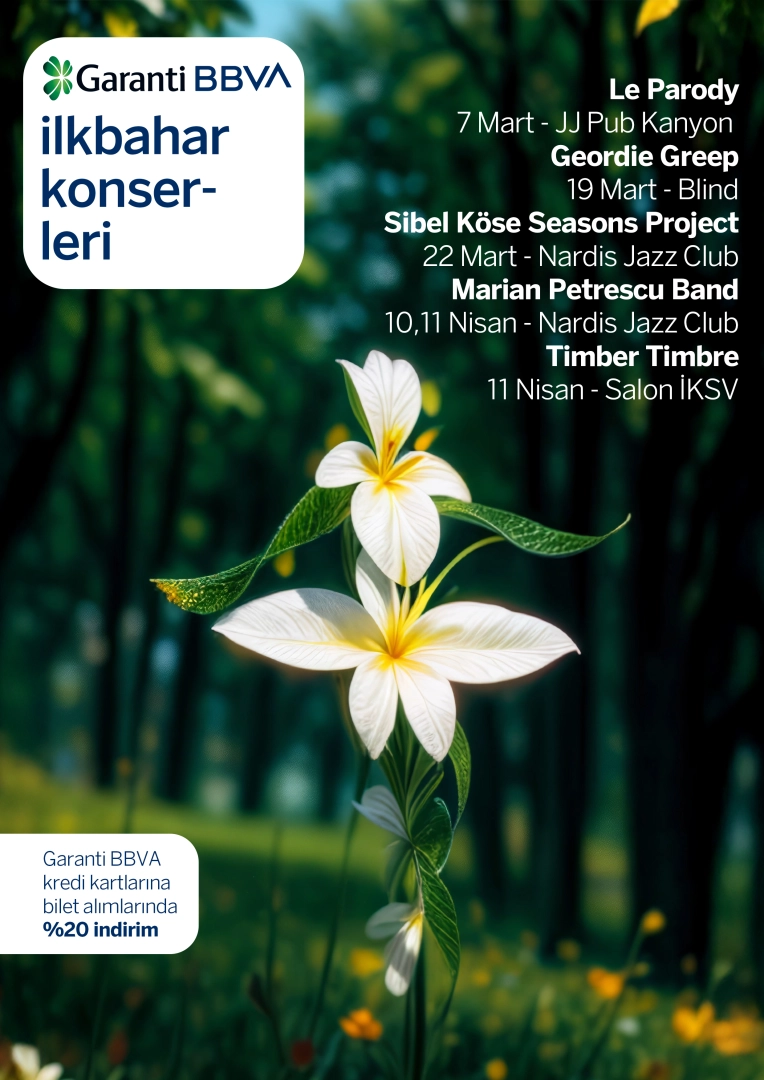 İSTANBUL, (DHA)- GARANTİ BBVA’nın geleneksel ‘Bahar Konserleri’ mart ayında müzikseverlerle buluşuyor. Bahar konserlerinin ilk döneminde, cazdan folk müziğe, deneysel rock’tan elektronik tınılara uzanan geniş bir repertuvarla, yerli ve uluslararası sanatçılar sahne alacak. Gerçekleşecek konserlerde Geordie Greep, Sibel Köse Season Project, Marian Petrescu Band ve Timber Timbre gibi isimler sahne alacak. Garanti BBVA Bahar Konserleri kapsamında düzenlenen etkinliklerde, Garanti BBVA kredi kartlarıyla bilet alımlarında yüzde 20 indirim fırsatı sunulacak.DENEYSEL ROCK SAHNESİNİN SESİ: GEORDİE GREEPİngiliz deneysel rock grubu Black Midi'nin eski solisti ve gitaristi Geordie Greep, 19 Mart'ta İstanbul'da sahne alacak. 2024 yılında yayımladığı ilk solo albümü The New Sound ile dikkat çeken Greep, caz füzyonundan avangart rock'a uzanan geniş bir yelpazede müzikal deneyler sunuyor.CAZ SAHNESİNİN SESİ: SİBEL KÖSETürkiye'nin caz vokalistlerinden Sibel Köse, 22 Mart'ta ‘Season Project’ adlı performansıyla sahne alacak. Köse, bu projede mevsimlerin ruhunu yansıtan bir repertuvar sunacak. MARİAN PETRESCU BAND İLE CAZ AKŞAMIRomanya doğumlu caz piyanisti Marian Petrescu, 10-11 Nisan tarihlerinde sahne alacak. 4 yaşında piyano çalmaya başlayan ve 15 yaşında Pori Jazz Festivali'nde sahne alarak caz dünyasına adım atan Petrescu, klasik müzik eğitiminin yanı sıra cazdaki üstün tekniği ve dinamik yorumlarıyla tanınıyor. Oscar Peterson’a olan hayranlığıyla bilinen sanatçı, 2010 yılında yayımladığı Thrivin’ – Live at Jazz Standard albümüyle büyük beğeni topladı.SİNEMATİK FOLK SOUNDUYLA: TİMBER TİMBREKanadalı folk müzik grubu Timber Timbre, 11 Nisan’da sahne alacak. Taylor Kirk liderliğindeki grup, blues, rock, caz, pop ve elektronik unsurları harmanlayarak gizemli ve sinematik bir atmosfer yaratıyor. 2009 yılında yayımladıkları kendi adlarını taşıyan albümleriyle çıkış yapan Timber Timbre, Magic Arrow ve Black Water gibi parçalarıyla tanınıyor.
