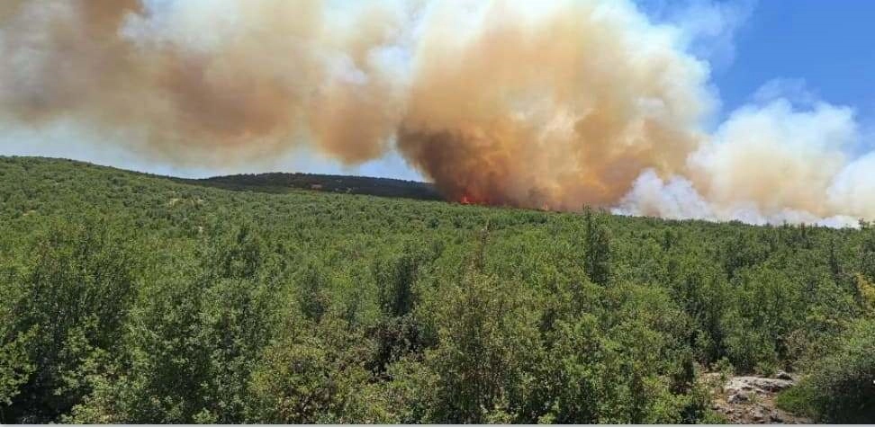 Kadir ÇELİK/GAZİANTEP, (DHA)- GAZİANTEP’in Nurdağı ilçesinde çıkan orman yangınına ekiplerin karadan ve havadan müdahalesi sürüyor.Sakçagözü ile İkizkuyu mahalleleri arasındaki ormanda, öğle saatlerinde yangın çıktı. Ormanda çıkan yangın kısa sürede rüzgarın etkisiyle büyüyüp yayıldı. Dumanları fark edenler, durumu 112 Acil Çağrı Merkezi’ne bildirdi. İhbarla bölgeye çok sayıda itfaiye, orman, AFAD, arazöz, tanker ve iş makinesi yönlendirildi. Ekipler, yangına müdahaleye başlarken, söndürme çalışmalarına havadan yangın söndürme helikopterinin de destek verdiği öğrenildi. Çalışmalar devam ediyor. (DHA)