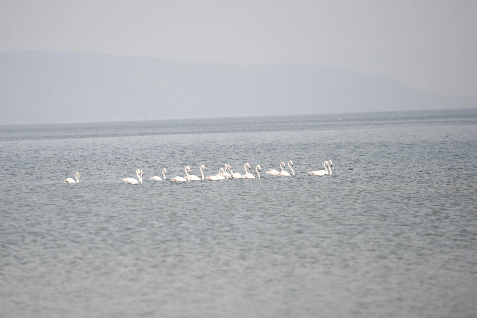 Hasan BOZBEY/ORHANGAZİ (Bursa), (DHA)- GÖÇ yolundaki flamingolar, Bursa'nın İznik Gölü'nde konaklarken görüntülendi. Göç yolundaki flamingolar, İznik Gölü'nün Orhangazi ilçesi Sahili'nde konakladı. Su ve kıyı kuşu türlerinin göç yolundaki duraklarından olan alan, göçmen kuşların beslenme ve barınma ihtiyaçları açısından önem taşıyor. Pembe ve beyaz renkleriyle göl kenarında güzel manzara oluşturan flamingolar, doğa tutkunlarının ilgisini çekti. Flamingolar, doğa fotoğrafçıları ve vatandaşlar tarafından görüntülendi. (DHA)